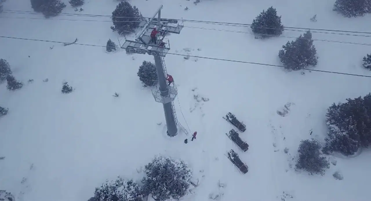 Ergan Dağı Kayak Merkezi'nde 2024-2025 yılı kayak sezonu emniyet tedbirleri kapsamında tatbikat gerçekleştirildi. Erzincan İl Jandarma Komutanlığı tarafından JAK Timi, UMKE ekipleri ve arama kurtarma köpeklerinin katıldığı tatbikatta senaryo gereği telesiyejde mahsur kalan bir kişiye müdahale edildi. Ekipler, telesiyejde mahsur kalan vatandaşı kurtardıktan sonra arazide kaybolan ve kayak yaparken yaralanan bir kişiyi de bularak ilk müdahalenin ardından hastaneye sevkini sağladı. Ergan Dağı Kayak Merkezi'nde emniyet ve asayiş hizmetleri ile kaybolma ve yaralanma olaylarını önlemek için jandarma ekiplerinin göreve hazır olduğu bildirildi. (DHA)
