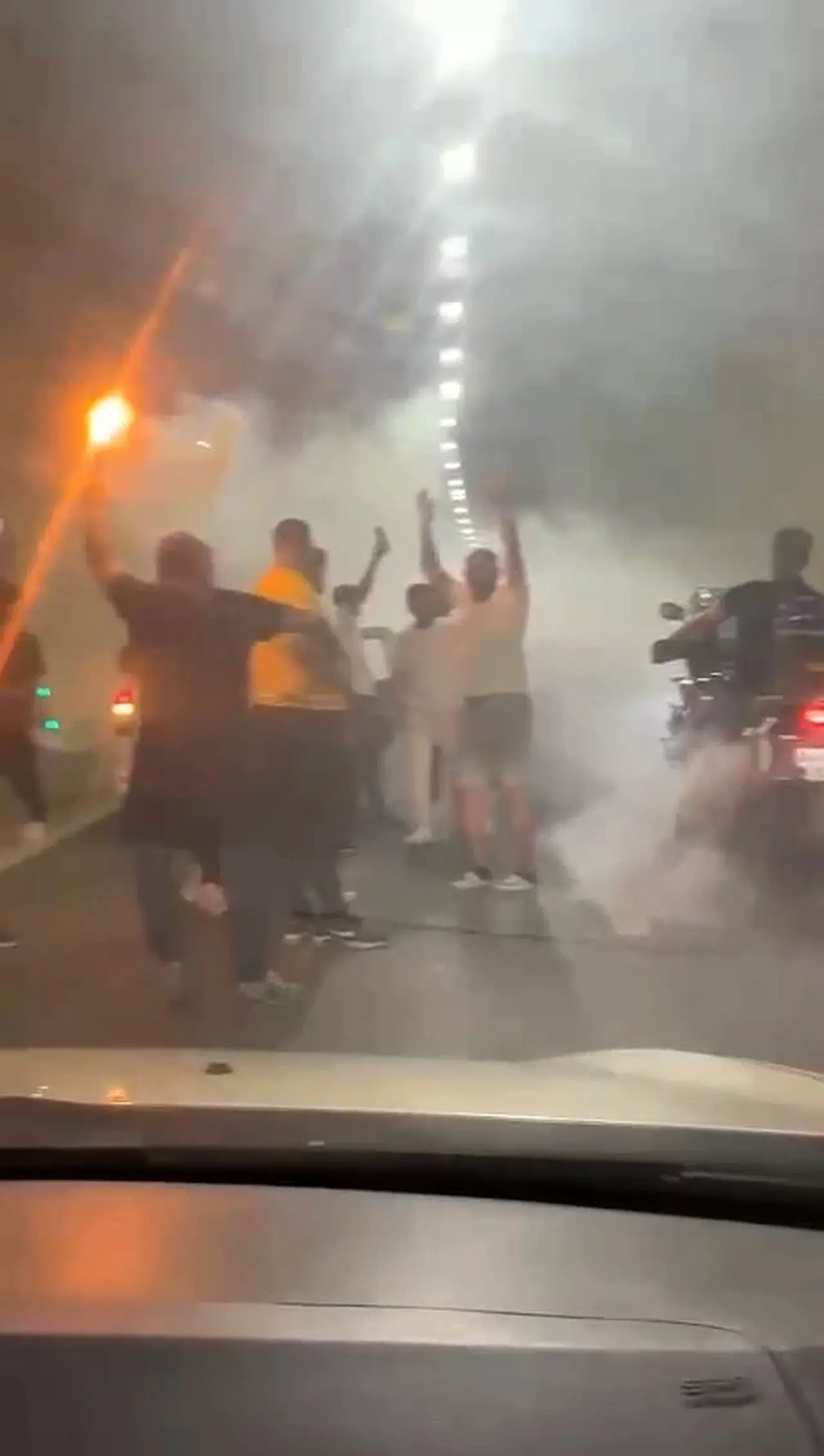 Olay, 27 Temmuz'da Halil Ulukurt Tüneli'nde meydana geldi. Asker uğurlaması için konvoy yapan kalabalık grup, tünel içinde uzun süre trafik akışını engelledi. Grubunun meşale yakıp oynaması üzerine trafikte bekleyen diğer sürücüler, yolun kapatılmasına tepki gösterdi. Görüntülerin sosyal medyada paylaşılması üzerine harekete geçen polis ekiplerinin incelemelerinde 11 araç tespit edilirken, 7 kişi yakalandı. Yakalanan kişilere Karayolları Trafik Kanunu gereğince cezai işlem uygulanırken, haklarında adli işlem başlatıldı. (DHA)