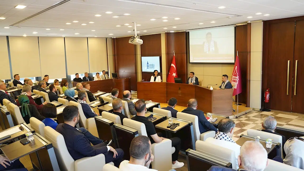 İSTANBUL, (DHA)- Beyoğlu Belediye, haziran ayı meclis toplantısında üyeler Filistin’e destek mesajı verdi. Üzerinde Filistin Bayrağının yer aldığı atkılarla toplantıya katılan meclis üyeleri yaptıkları açıklamalarla Filistin halkına dayanışma içinde olduklarını söyledi.