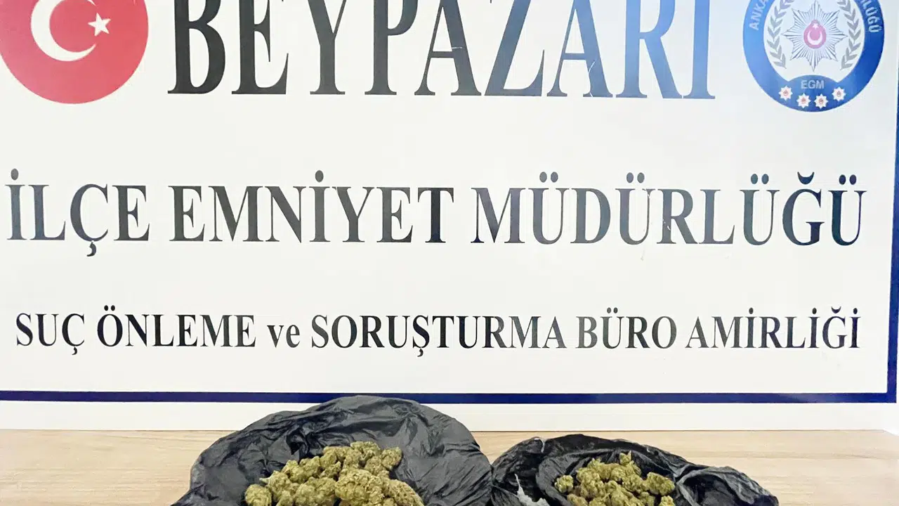 İlçe Emniyet Müdürlüğü ekipleri, İstanbul'dan Beypazarı'na geldiği tespit edilen şüpheli aracı ilçe girişinde durdurdu. Araçtaki kişinin 'Uyuşturucu madde bulundurmak ve kullanmak' suçundan kesinleşmiş hapis cezası bulunan E.Ö. olduğu belirlenirken, yapılan aramada 67 gram miktar esrar ele geçirildi.