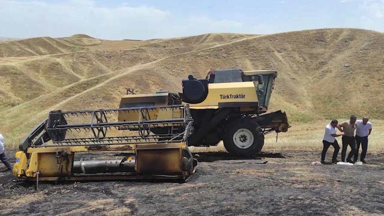 Biçerdöver alev aldı, 450 dönüm buğday ekili arazi zarar gördü