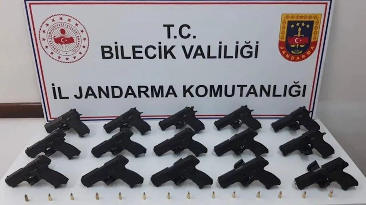 Bilecik Jandarma Komutanlığı ekipleri, Bozüyük ilçesindeki yol kontrol uygulamasında durumundan şüphelendikleri bir aracı durdurdu. Araçta yapılan aramada 15 adet ruhsatsız tabanca ile 14 şarjör ele geçirildi. Araç sürücüsü gözaltına alınırken, geçirildiği sağlık kontrolünün ardından ifadesi için Bilecik Jandarma Komutanlığı’na götürüldü. Soruşturma sürüyor. (DHA)