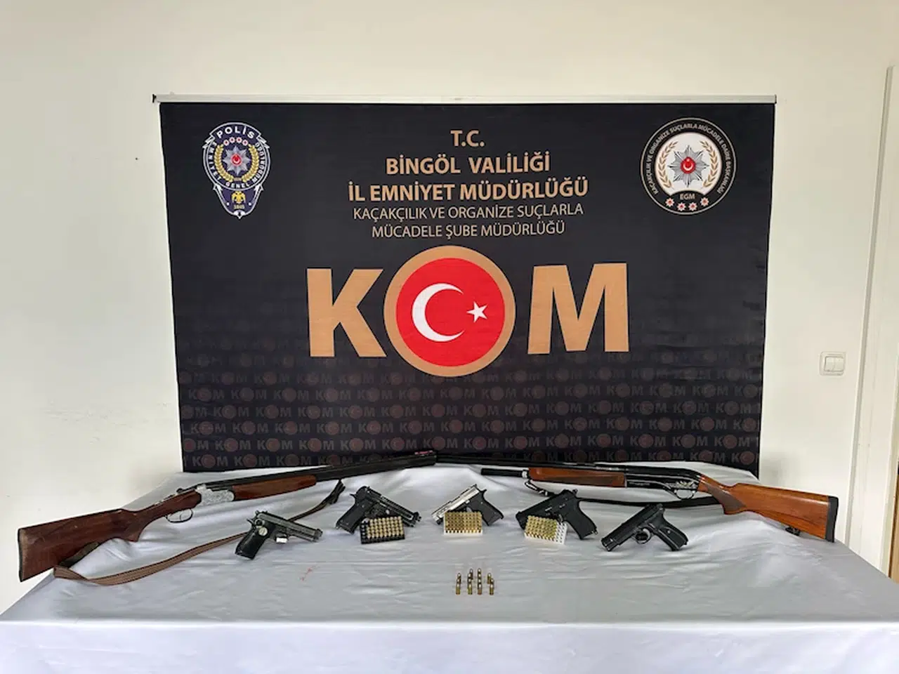 İl Emniyet Müdürlüğü Kaçakçılık ve Organize Suçlarla Mücadele (KOM) Şube Müdürlüğü ekipleri tarafından düzenlenen silah kaçakçılığı operasyonunda 3 ruhsatsız tabanca, 3 şarjör, 2 kurusıkı tabanca, 2 ruhsatsız av tüfeği, 147 fişek ele geçirildi. 8 şüpheli gözaltına alındı. İşlemlerinin ardından adliyeye sevk edilen 2 şüpheli çıkarıldığı mahkemece tutuklanarak cezaevine gönderildi. 6 şüpheli hakkında ise yasal işlem yapıldı. (DHA)