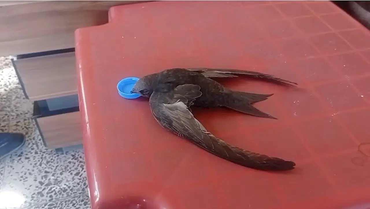 Bitkin halde bulduğu ebabil kuşunu besledi