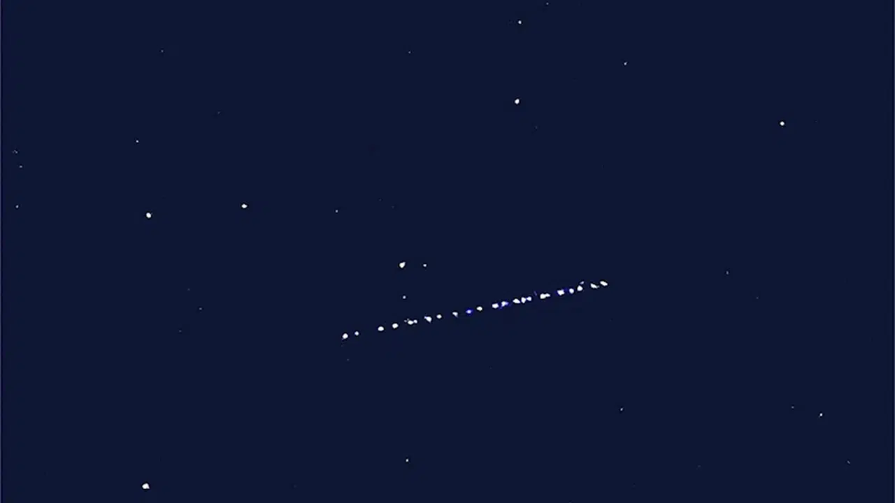 Starlink uyduları, dün akşam Tatvan ilçesinde görüldü. Elon Musk'ın kurucusu olduğu uzay taşımacılığı şirketi SpaceX'in uzaya gönderdiği Starlink uydularının geçişi görenleri heyecanlandırdı. Gökyüzünde tek sıra halinde giden uydular, çevredekiler tarafından cep telefonu kamerasıyla kaydedildi.(DHA)