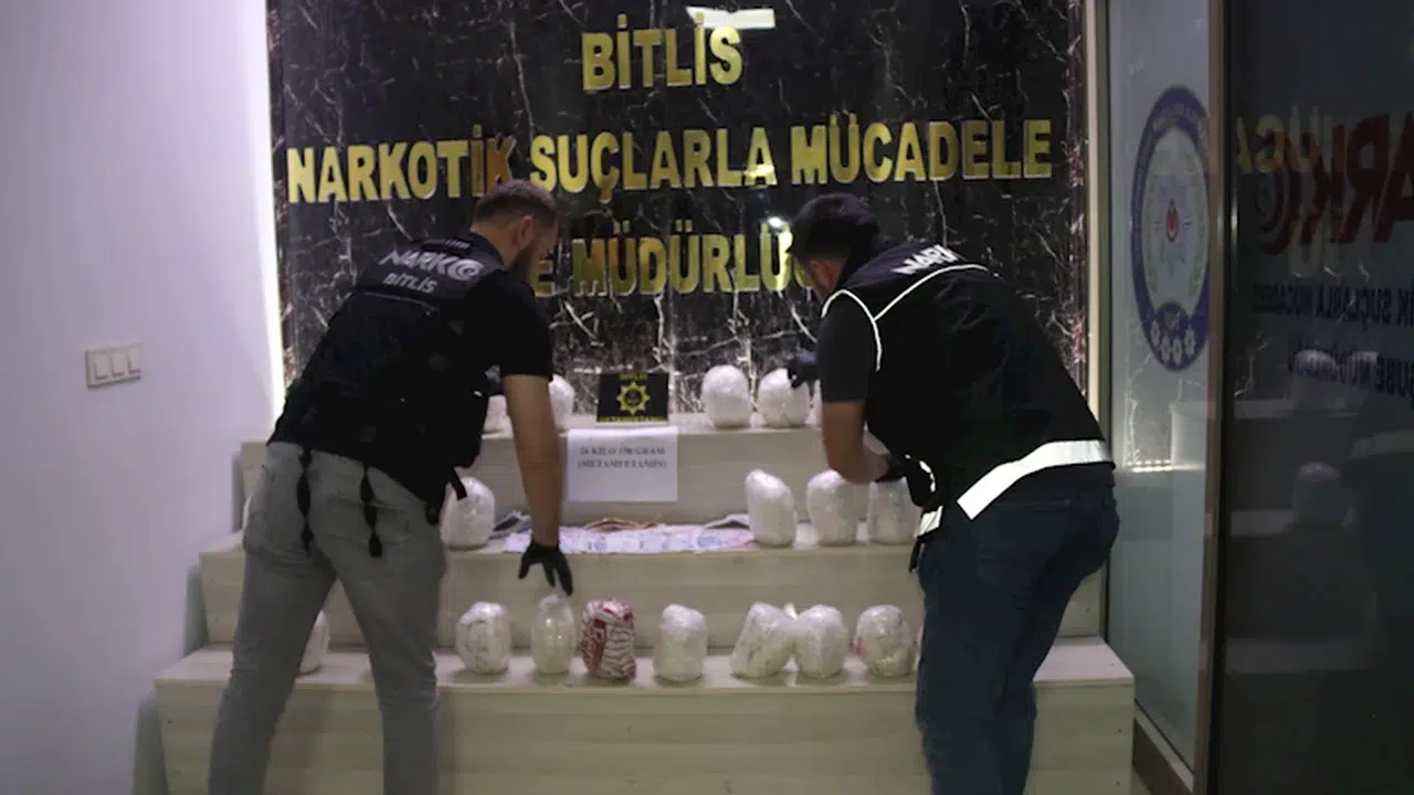 Özcan ÇİRİŞ/BİTLİS,(DHA)-BİTLİS Emniyet Müdürlüğü'ne bağlı Narkotik Suçlarla Mücadele Şubesi ekipleri, ihbar sonrası durdurulan araçta 26 kilo 150 gram metamfetamin ele geçirdi.