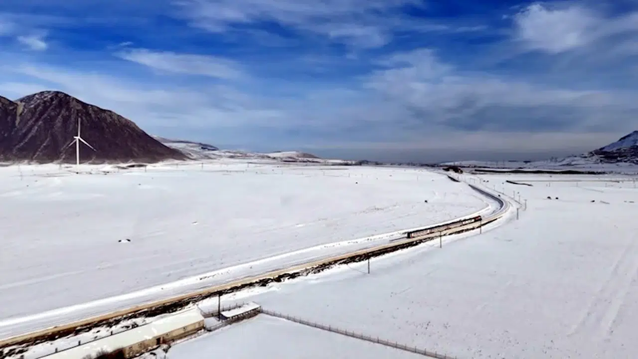 Özcan ÇİRİŞ/BİTLİS,(DHA)-VAN Gölü Ekspres'nin kar kalınlığının yaklaşık 20 santimetreyi bulduğu Bitlis'in Rahva, Kirkor Dağı bölgedeki geçişi havadan görüntülendi.