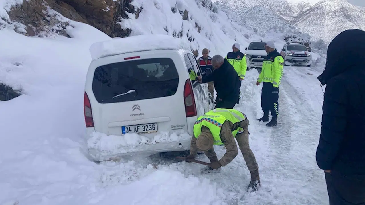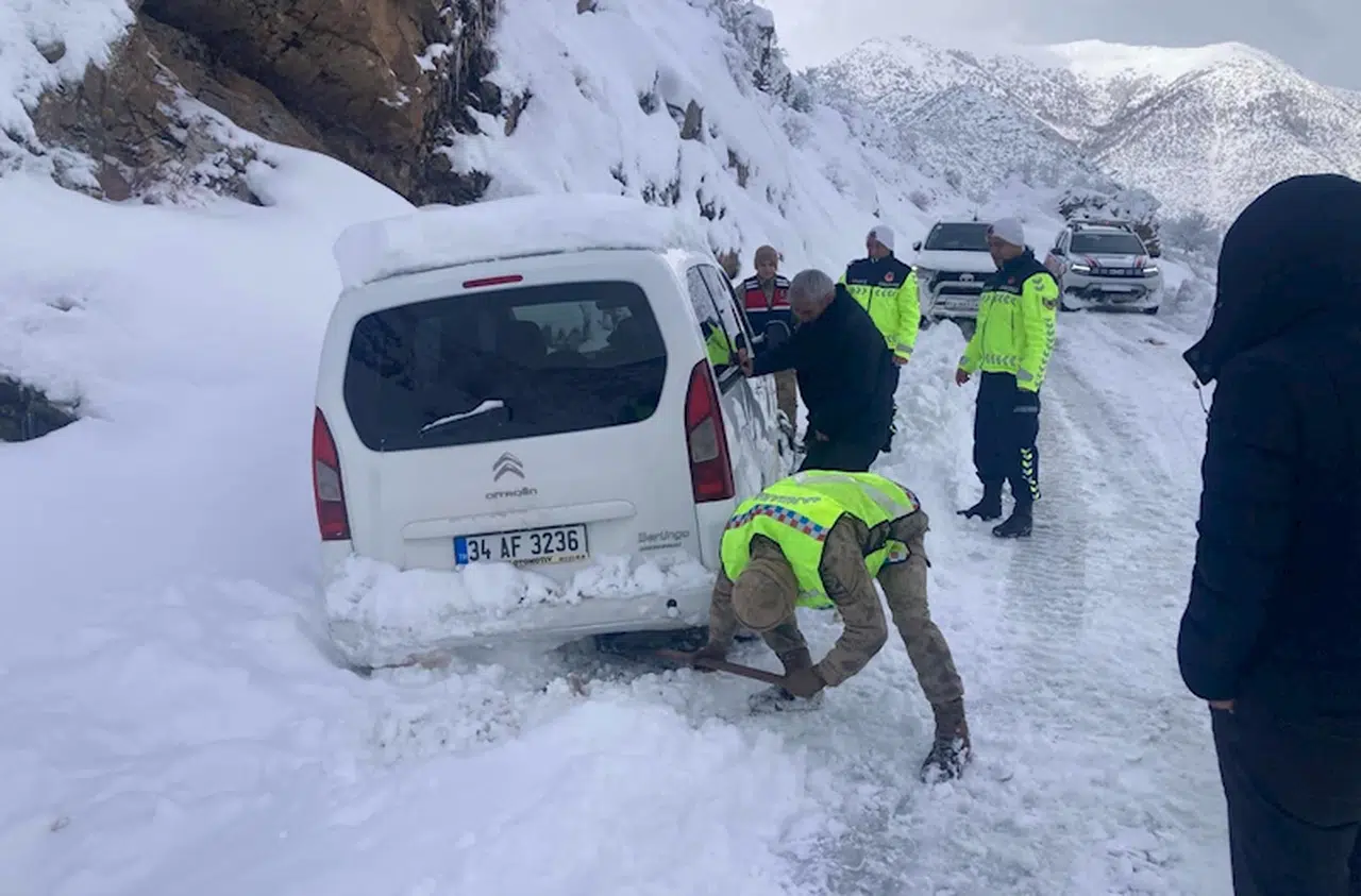 Bitlis'te yoğun kar, günlük yaşamı ve trafiği olumsuz etkiledi. Tatvan ilçesinden, yaşadıkları köye doğru yola çıkan, içerisinde 3 kişinin bulunduğu 34 AF 3236 plakalı hafif ticari araç, Tatvan ilçesine bağlı Kısıklı köyü Kepenek mezrası mevkisinde kara saplandı. Vatandaşların durumu jandarmaya bildirmesi üzerine Tatvan İlçe Özel İdare ekipleri ile Tatvan İlçe Kaynarca Karakol Komutanlığı Timi bölgeye yönlendirildi. Mahsur kalan vatandaşlar, ekiplerin 2 saatlik çalışması sonucu bulundukları yerden kurtarıldı. (DHA)