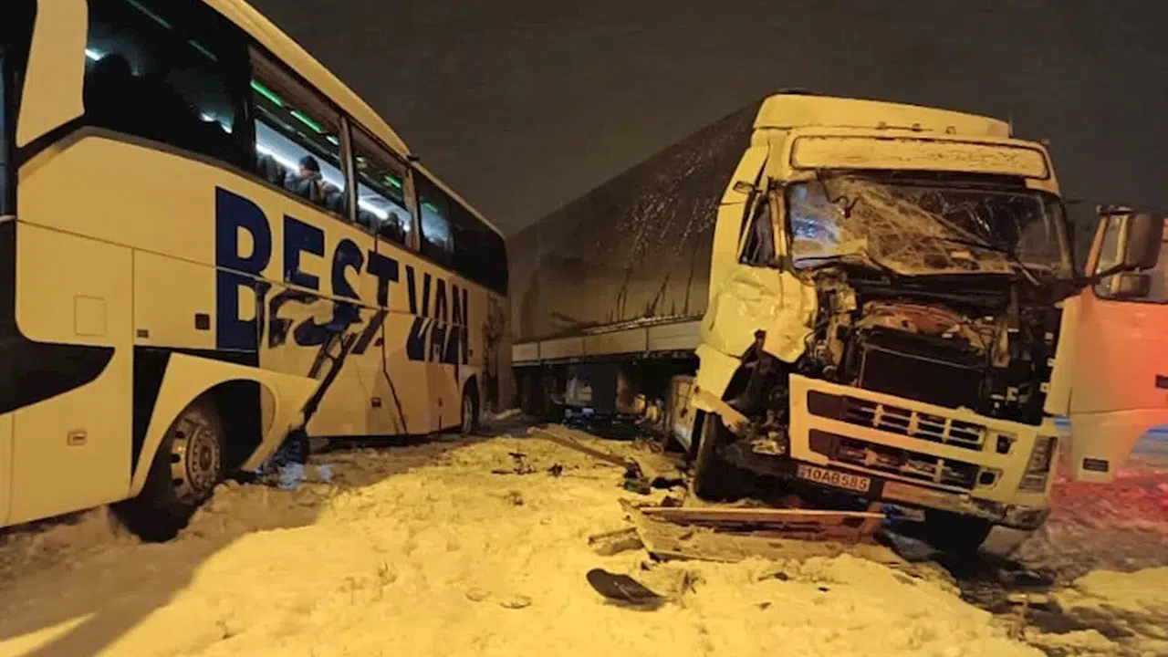 Kaza, sabah saatlerinde Bitlis-Tatvan yolu Tatvan girişindeki kavşakta meydana geldi. Bitlis'ten Van'a giden E.Ç. yönetimindeki 65 BJ 359 plakalı yolcu otobüsü ile kavşakta dönüş yapmaya çalışan yabancı uyruklu J.G.'nin kullandığı 10 AB 585 plakalı TIR, kar yağışı ve yoldaki buzlanma nedeniyle çarpıştı. Kazada otobüste yolcu olarak bulunan 2 kişi hafif yaralandı. Kaza sonrası olay yerine sağlık ekipleri, AFAD, polis ve sağlık ekipleri sevk edildi. Yaralılar hastaneye götürülürken, kaza ile ilgili soruşturma başlatıldı. (DHA)