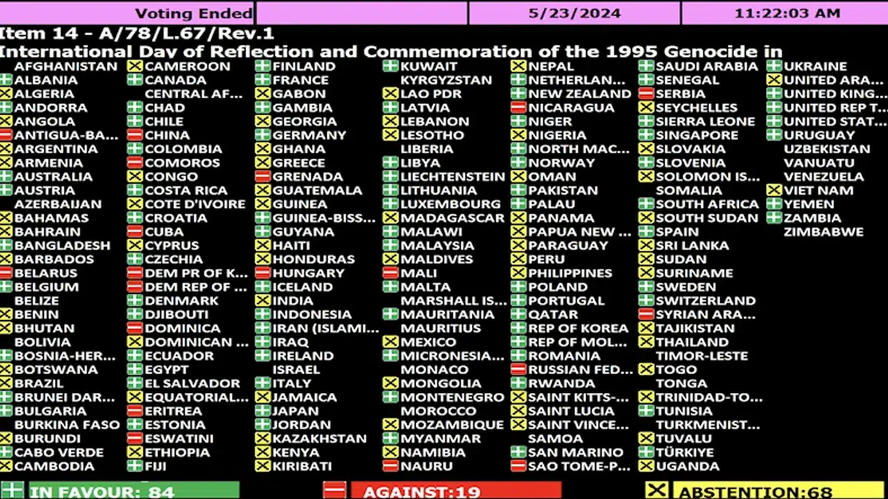 Beril SÖNMEZ, (DHA) – Birleşmiş Milletler Genel Kurulu, bugün yaptığı oylamada 11 Temmuz gününü Srebrenitsa'daki 1995 Soykırımını Anma Günü olarak belirleyen ve her yıl anılacak kararı kabul etti.