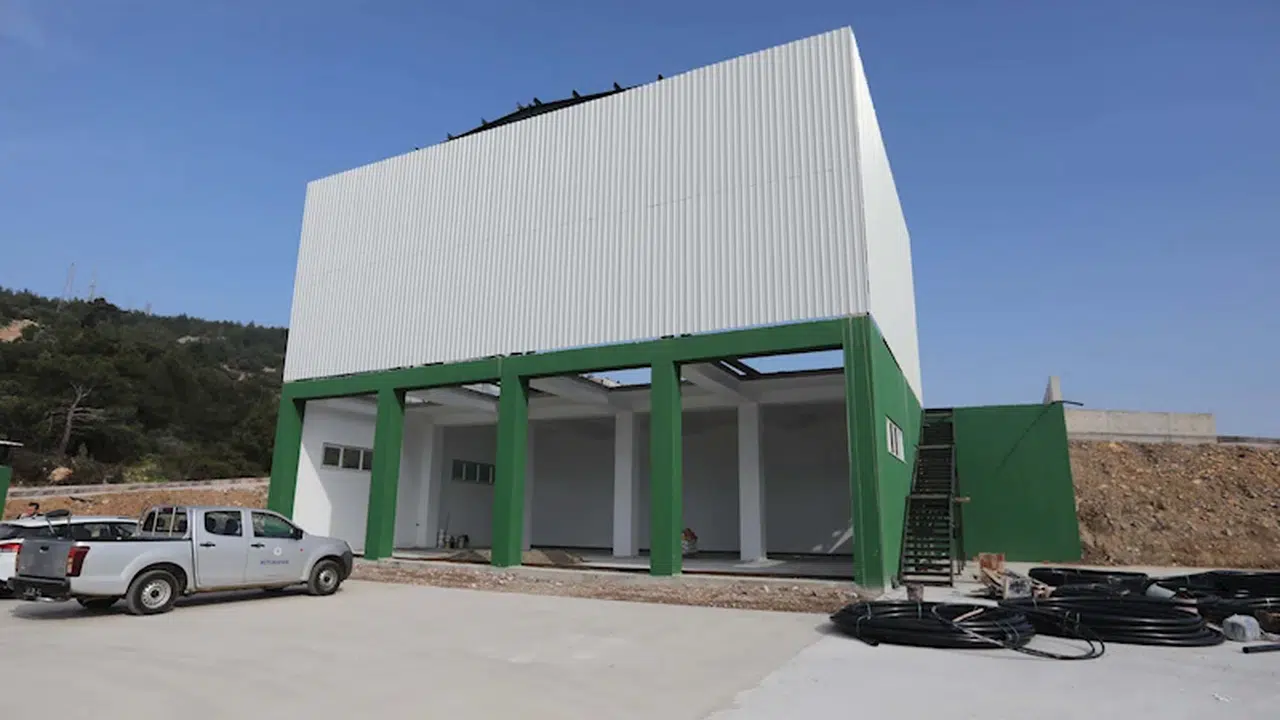 BODRUM (Muğla), (DHA)-MUĞLA Büyükşehir Belediyesi, Bodrum Torba Mahallesi'nde yapımına başladığı katı atık transfer istasyonunun yüzde 85'ini tamamladı. Proje hayata geçtiğinde günlük ortalama 600 ton atık katı atık düzenli depolama tesislerine transfer edilecek.