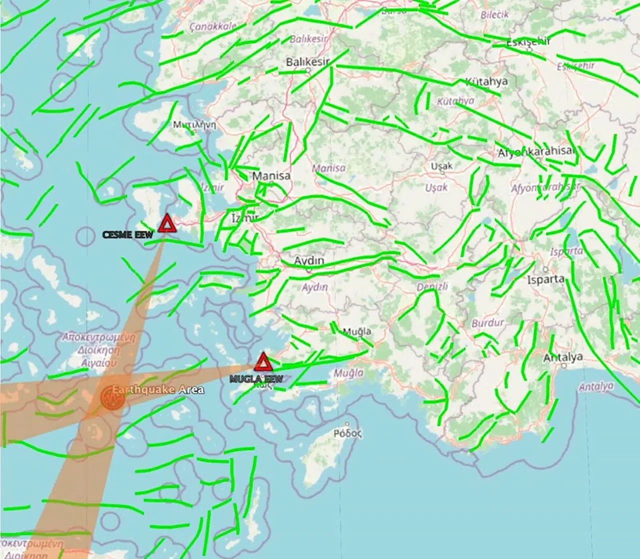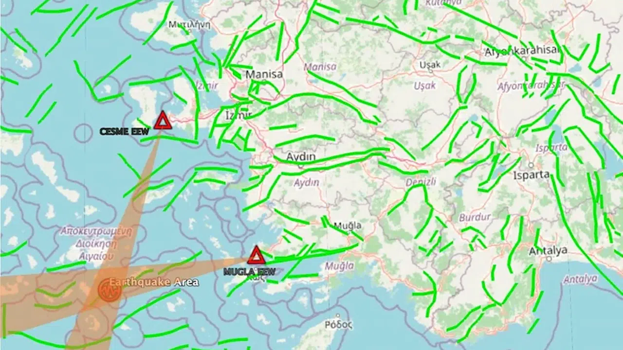 Fırat AKAY/BODRUM (Muğla), (DHA)- EGE Denizi Santorini Adası çevresinde süren depremler nedeniyle Muğla'nın Bodrum ile İzmir'in Çeşme ilçelerine deprem erken uyarı sistemi kuruldu. Olası deprem durumunda Muğla’nın Datça ilçesinden İzmir'e kadar bir etkinin söz konusu olabileceğini söyleyen Deprem Uzmanı Dr. Süleyman Tunç, "Özellikle Ege Denizi'ndeki bu alanı izleyerek Bodrum'a 20 saniyeler İzmir'e kadar da 42 saniyelere kadar erken uyarı sinyalini üretebilir duruma geldik" dedi.