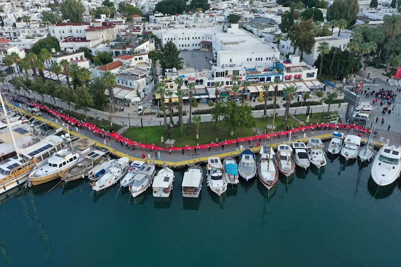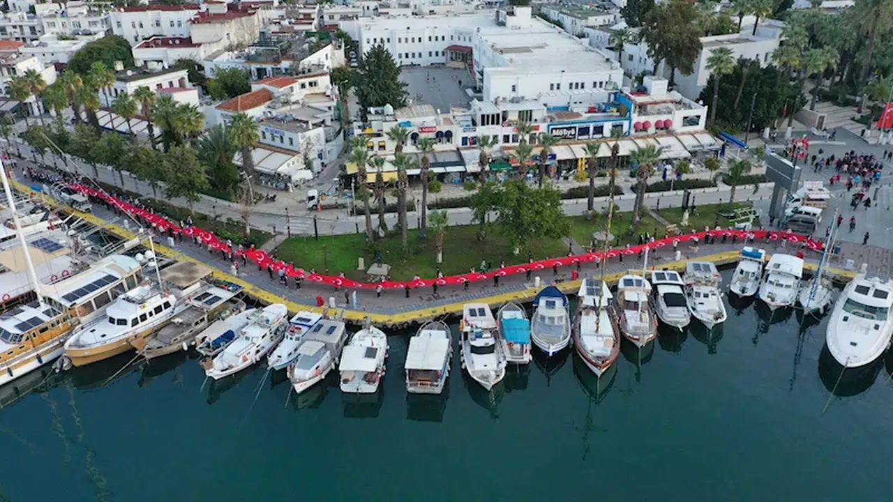 Fırat AKAY / BODRUM (Muğla), (DHA)-MUĞLA'nın Bodrum ilçesinde, Sarıkamış Harekatı'nın 110'uncu yılı kapsamında 120 metrelik Türk bayrağı ile şehitleri anma yürüyüşü düzenlendi.