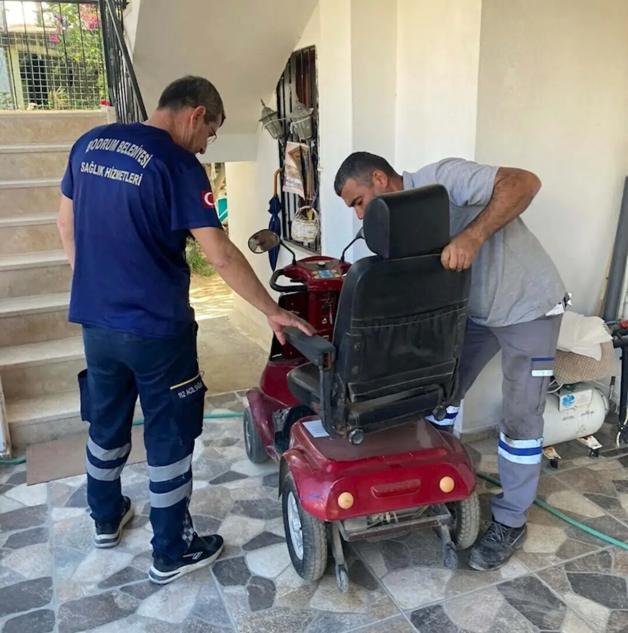 Bodrum Belediyesi Kültür ve Sosyal İşler Müdürlüğü ile Destek Hizmetleri Müdürlüğü iş birliğiyle akülü sandalye bakım ve onarım talepleri karşılanıyor. Kültür ve Sosyal İşler Müdürlüğüne bağlı Sosyal Hizmetler Bürosu tarafından Bodrum Belediyesi'ne başvuran engelli vatandaşların sosyal incelemelerinin yapılması sonucunda akülü sandalye bakım, onarım, tamirat ve tadilatını Destek Hizmetleri Müdürlüğü'ne bağlı ekipler yapıyor.