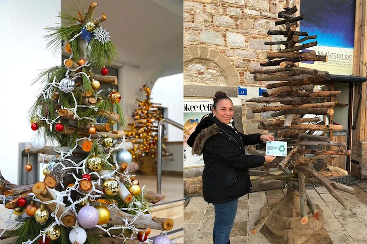 MUĞLA'nın Bodrum Belediyesi, geri dönüşüm malzemelerinden hazırladığı yılbaşı ağaçlarıyla çevre dostu bir çalışma gerçekleştirdi. Bodrum Belediyesi Park ve Bahçeler Müdürlüğü, yılbaşı süslemeleri için ağaç budama çalışmalarından arta kalan odun ve dalları geri dönüşümle değerlendirdi. Hazırlanan yılbaşı ağaçları, belediyenin çeşitli birimlerine yerleştirilerek süslendi. Projeye ilişkin açıklamalarda bulunan Bodrum Belediye Başkanı Tamer Mandalinci, “Park ve Bahçeler Müdürlüğümüzün bu çalışmasıyla, yeni yıl süslemelerine geri dönüşümle katkı sağladık. Budama çalışmalarından çıkan parçaları atmak yerine değerlendirerek yılbaşı ağaçları oluşturduk ve birimlerimize dağıttık. Böylece hem atıkları değerlendirmiş olduk hem de yılbaşı süslemelerinde farklı bir yaklaşım sergiledik. Ayrıca saha çalışmasında karşılaştığımız kurumuş bir ağacı da beyaza boyadık, üzerine nazar boncuklarıyla süslemeler yaptık ve belediye binamızın önüne yerleştirdik” ifadelerini kullandı.
