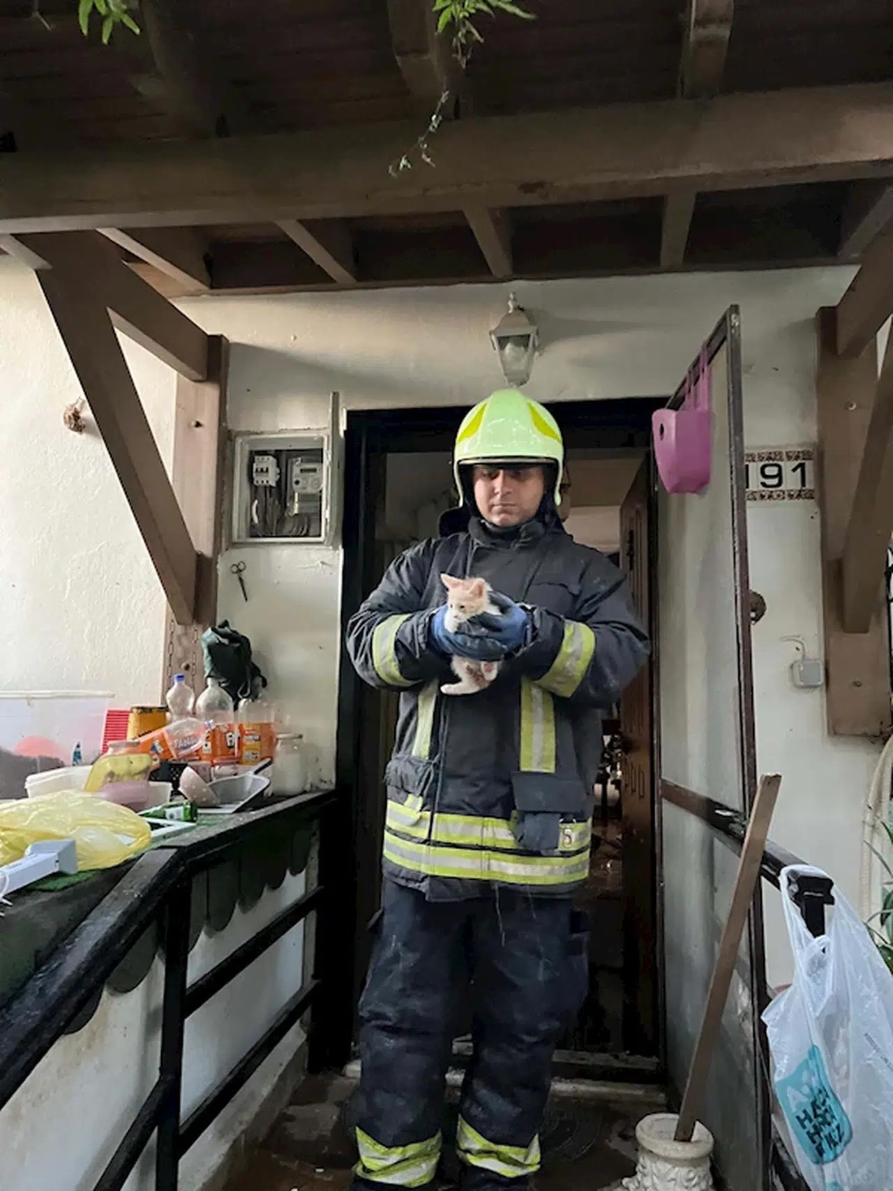 Fırat AKAY/ BODRUM (Muğla), (DHA)- MUĞLA’nın Bodrum ilçesinde, üç katlı bir villanın en üst katında çıkan yangın itfaiye ekipleri tarafından söndürülürken, yavru kedileri de  kurtardı.