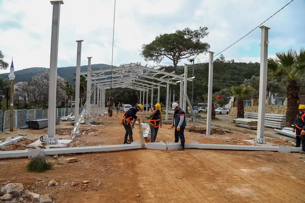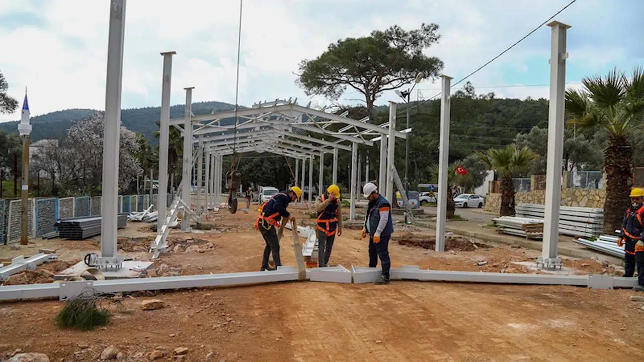 Proje kapsamında, Kızılağaç Mahallesi köy içi mevkiinde toplam 750 metrekarelik kapalı alanda pazar yeri inşa ediliyor. 80 metre uzunluğunda, 7 metre genişliğinde ve 6,5 metre yüksekliğinde tasarlanan kapalı pazar yerinin yapımında 28 ton çelik ve saç kullanılması planlanıyor. Kapalı pazar yerinin ikinci etap çalışmaları devam ediyor. Bodrum Belediye Başkanı Tamer Mandalinci pazar yeri hakkında yaptığı açıklamada, "Bodrum'un her köşesinde vatandaşlarımızın yaşam kalitesini artırmak için çalışıyoruz. Kızılağaç Mahallemizde uzun süredir talep edilen kapalı pazar yerimizin ilk etabını tamamlamış olmanın mutluluğunu yaşıyoruz. Esnafımızın daha iyi şartlarda hizmet vermesi, vatandaşlarımızın sağlıklı ve konforlu bir ortamda alışveriş yapabilmesi için modern bir pazar yeri inşa ediyoruz. İkinci etap çalışmalarımız hızla devam ediyor ve en kısa sürede pazar yerimizi tam kapasiteyle hizmete açacağız. Halkımızın desteğiyle Bodrum'a yakışır projeleri hayata geçirmeye devam edeceğiz" ifadelerini kullandı.(DHA)