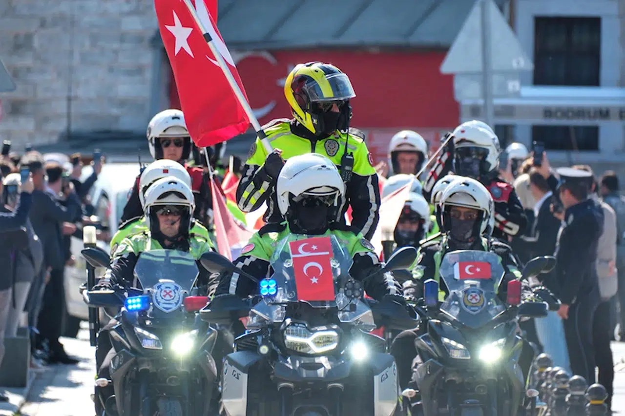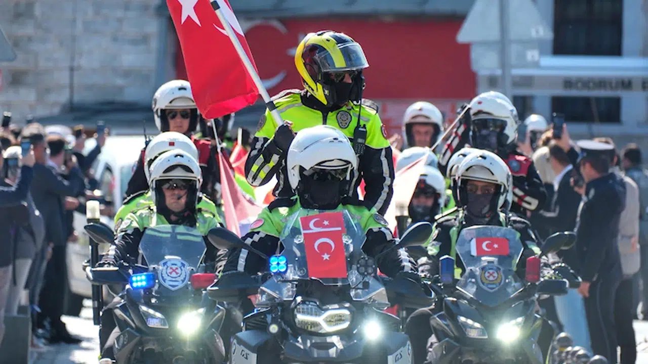 Türk Polis Teşkilatı'nın 180'inci kuruluş yıl dönümü etkinlikleri kapsamında Belediye Meydanı'nda kutlama programı düzenlendi. Programa Bodrum Kaymakamı Mustafa Çit, Bodrum Belediye Başkanı Tamer Mandalinci, Bodrum İlçe Emniyet Müdürü Mehmet Darendeli, Bodrum İlçe Jandarma Komutanı Yarbay Gökhan Kurgan, Bodrum İlçe Gençlik ve Spor Müdürü Oktay Dumruk, Bodrum İlçe Milli Eğitim Müdürü Aslan Korkmaz, STK temsilcileri ile çok sayıda polis katıldı. Saygı duruşu ve İstiklal Marşı'nın okunmasıyla başlayan tören daha sonra Atatürk Anıtı'na çelenk sunulmasıyla devam etti. Tören kapsamında, Bodrum İlçe Emniyet Müdürlüğü ekipleri 10 motosiklet, 5 otomobil ve 1 özel hareket aracıyla şehir turu yaptı. Eski Otogar içerisindeki polis noktasından hareket eden ekipler, Cevat Şakir Caddesi, Neyzen Tevfik Caddesi ve Osman Nuri Bilgin Caddesi'nde Değirmenler mevkiine ilerledi. Bölgeden geçen araçlar ve motosiklet sürücüleri kornalarını çalarak korteje destek olurken, Türk bayrakları taşıyan polislerin geçişini, yerli ve yabancı turistlerle ilçede yaşamını sürdüren vatandaşlar ilgiyle takip etti, o anları cep telefonları ile kayıt altına aldı.(DHA)
