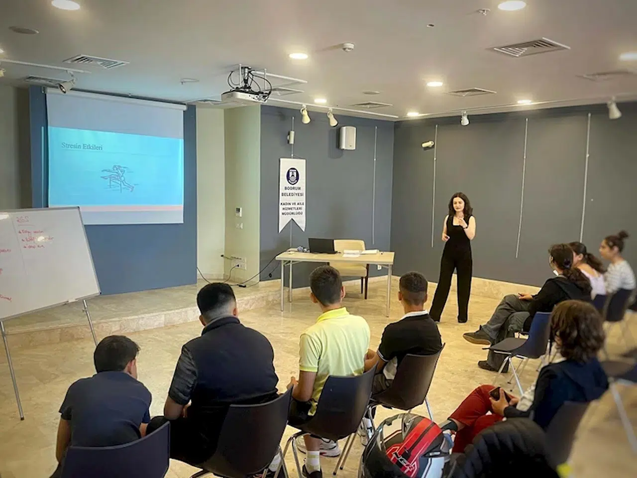 BODRUM (Muğla),(DHA)-MUĞLA'nın Bodrum Belediyesi tarafından ortaokul ve lise son sınıf öğrencilerine yönelik düzenlenen 'Sınav kaygısı' konulu Psikoeğitim Seminerleri bu hafta sonu, Turgutreis bölgesinden başlatıldı. İlk seminer, ortaokul öğrencilerine yönelik düzenlendi.