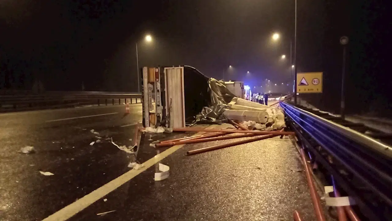 Kaza, saat 06.30 sıralarında Anadolu Otoyolu’nun Bolu Dağı Tüneli çıkışında meydana geldi. İstanbul istikametine giden F.U. yönetimindeki 31 PB 254 plakalı inşaat malzemesi yüklü TIR, yağmur nedeniyle kayganlaşan yolda kontrolden çıkarak devrildi. Kazanın ardından olay yerine jandarma ve sağlık ekibi sevk edildi. TIR'ın dorsesindeki malzemeler yola saçıldı. TIR sürücüsü kazayı yara almadan atlattı. Kaza nedeniyle otoyolun İstanbul yönünde trafik, tek şeritten kontrollü olarak sağlandı. TIR’ın ve yola düşen malzemelerin kaldırılmasıyla ulaşım normale döndü. Kazayla ilgili soruşturma başlatıldı. (DHA)