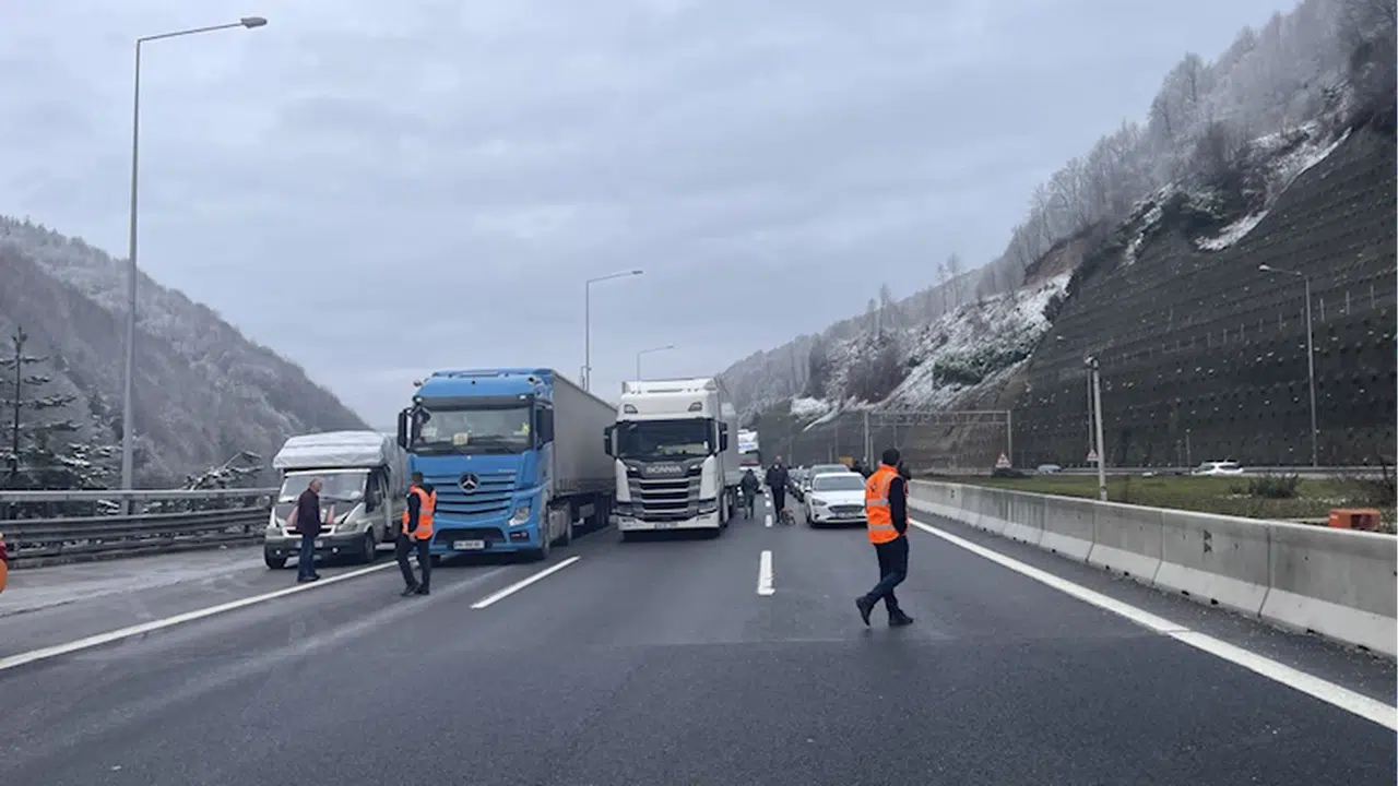 Ekipler, yangın nedeniyle yolun Ankara yönünü ulaşıma kapatırken, itfaiye görevlileri yangına müdahale etti.