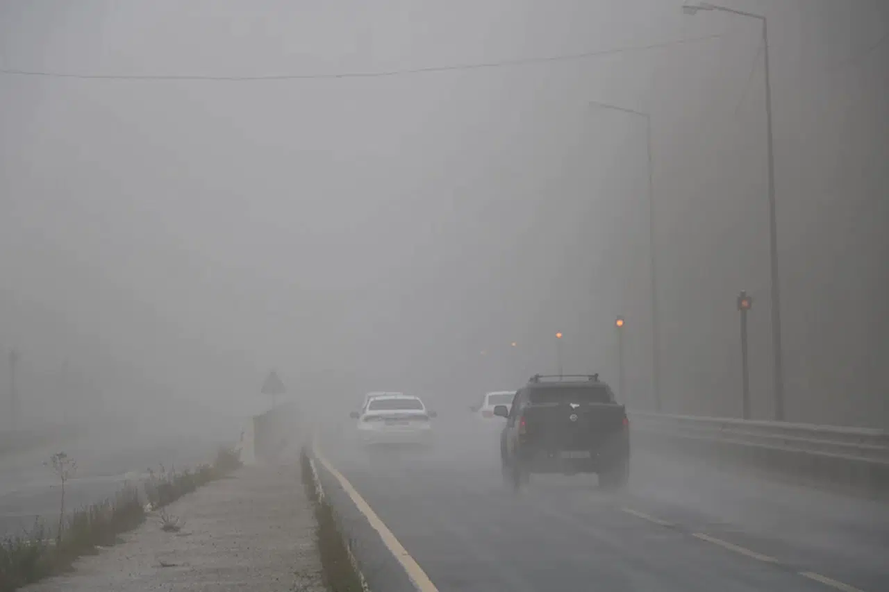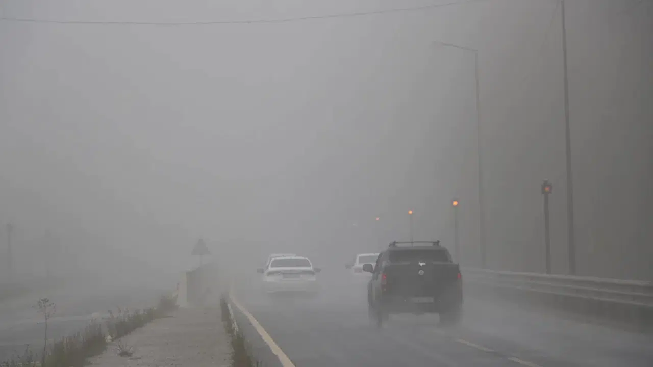 Bolu Dağı'nın D-100 Kara Yolu geçişinde, sabah saatlerinden itibaren sağanak ve sis etkili oldu. Yolun Karanlıkdere ve Seymenler mevkilerinde etkili olan sis nedeniyle görüş mesafesi, yaklaşık 30 metreye kadar düştü. Sürücüler görüş mesafesinin azalması nedeniyle yavaş ilerledi. (DHA)