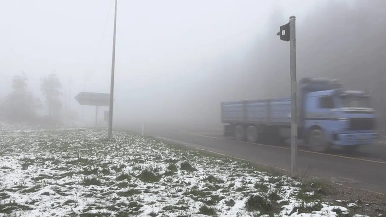 Bolu Dağı geçişinde sabah saatlerine doğru hafif kar yağışı etkili oldu. Yağışın ardından yeşil alanlar kısmen karla kaplandı. Bolu Dağı’nın D-100 Karayolu geçişinde etkili olan sis nedeniyle görüş mesafesi yaklaşık 20 metreye düştü. Sürücüler yoğun sis nedeniyle yavaş ilerledi. (DHA)