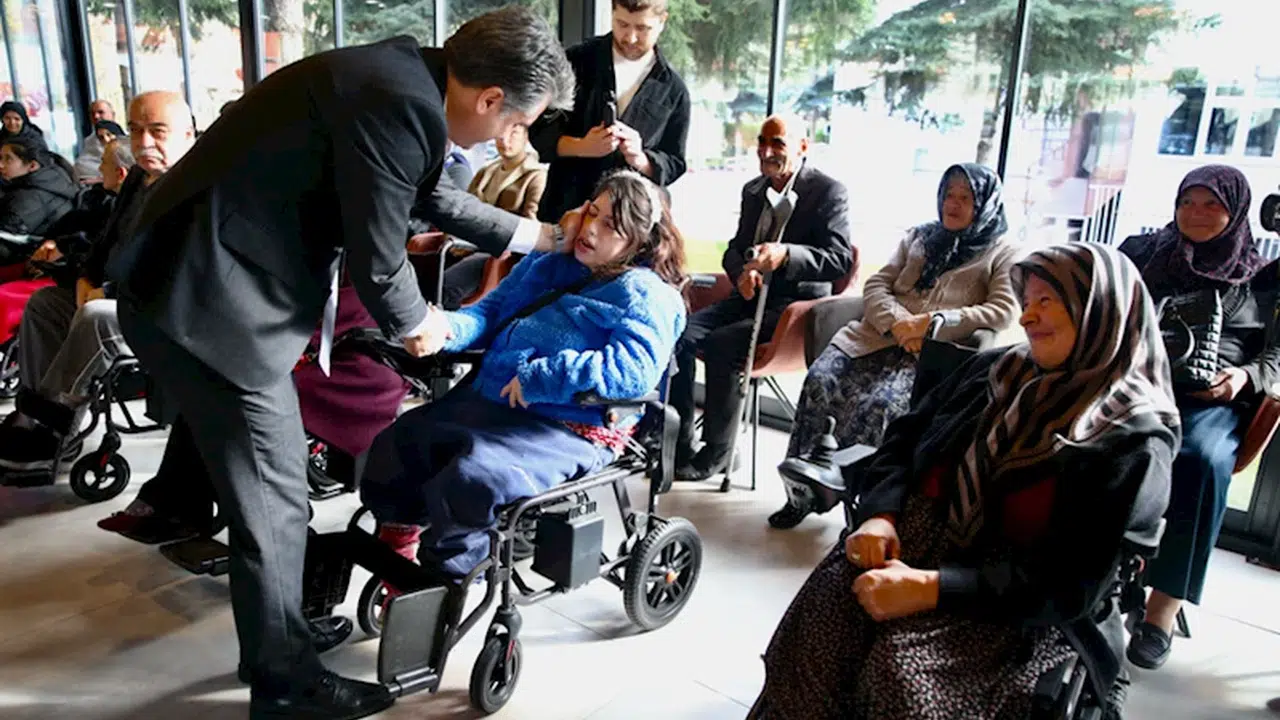 Düzce merkezli elektrikli bisiklet, skuter ve motosiklet imal eden şirketin ürettiği akülü tekerlekli sandalyelerin teslimi için Bolu İzzet Baysal Vakıf Huzurevi Kış Bahçesi'nde tören düzenlendi.