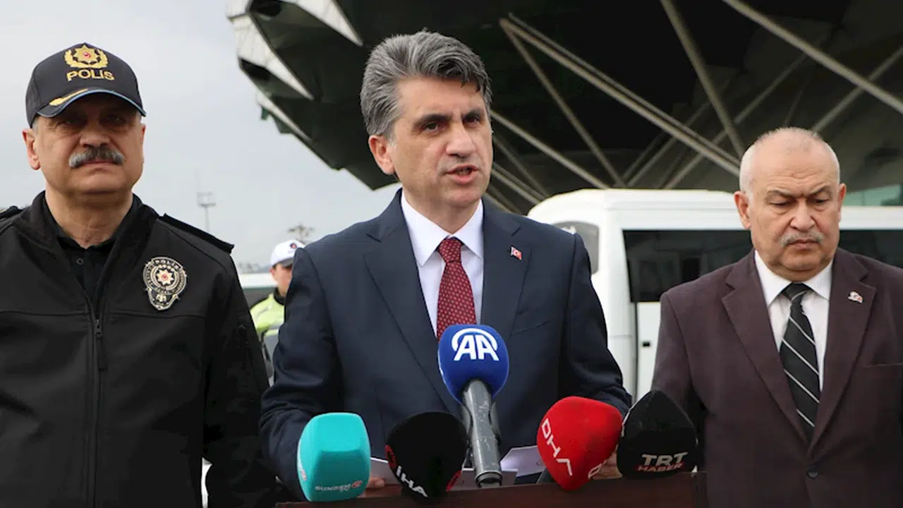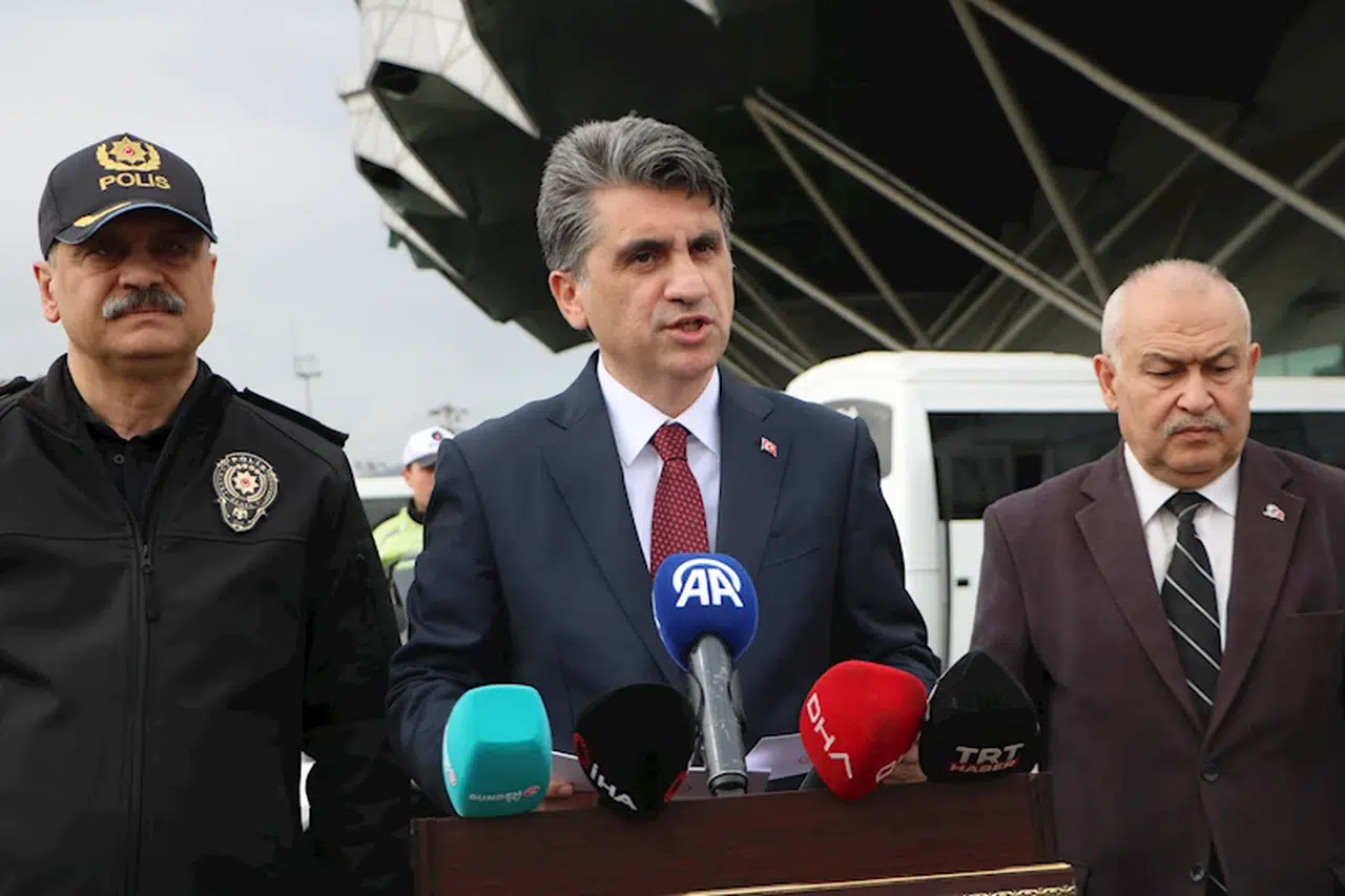 Vali Abdulaziz Aydın, yolcu otobüslerindeki vatandaşların da bayramlarını kutlayarak, araç sürücülerine dikkatli olmaları ve trafik kurallarına uymaları uyarısında bulundu. (DHA)