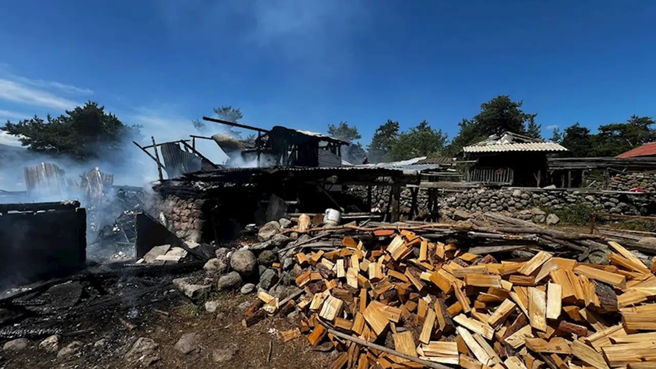 Ekiplerin müdahalesiyle söndürülen yangında ev ve müştemilat kullanılamaz hale geldi.