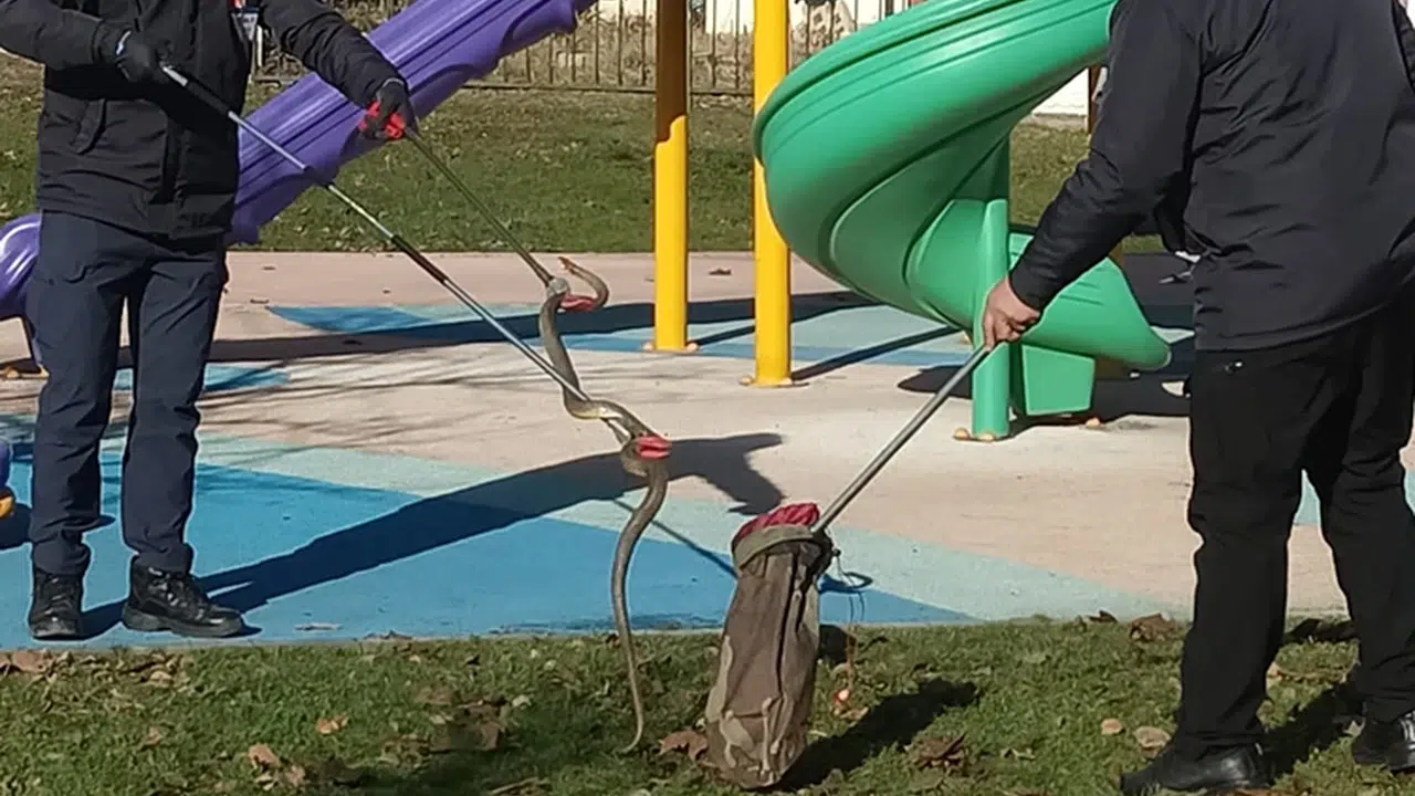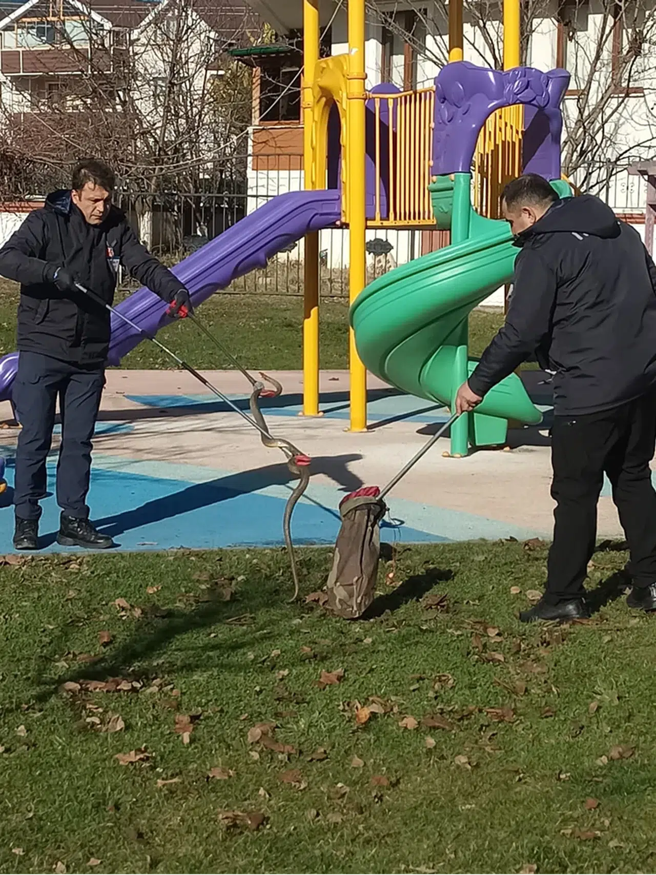 BOLU (AA) - Bolu'da çocuk parkında görülen yılan itfaiye ekiplerince yakalanarak doğal yaşam alanına bırakıldı.