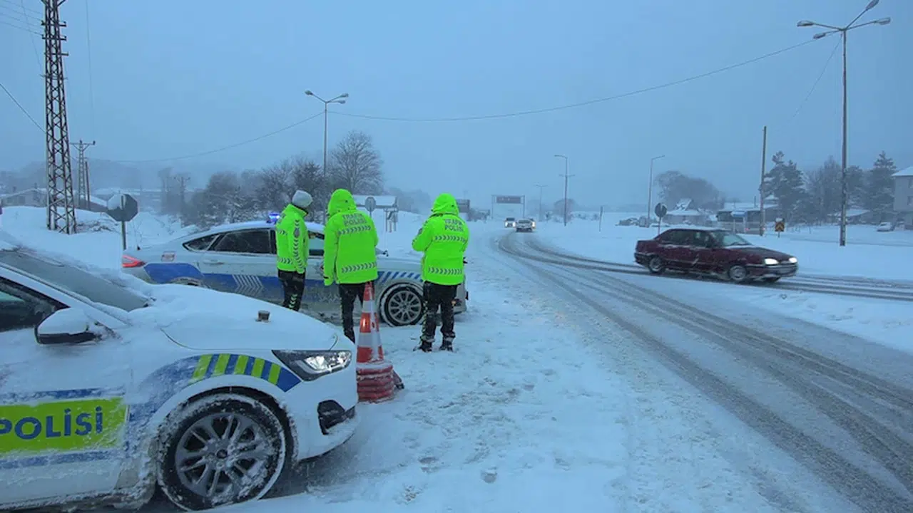 D-100 YOLU GEÇİŞİNDE YOĞUN KAR ULAŞIMI AKSATTI