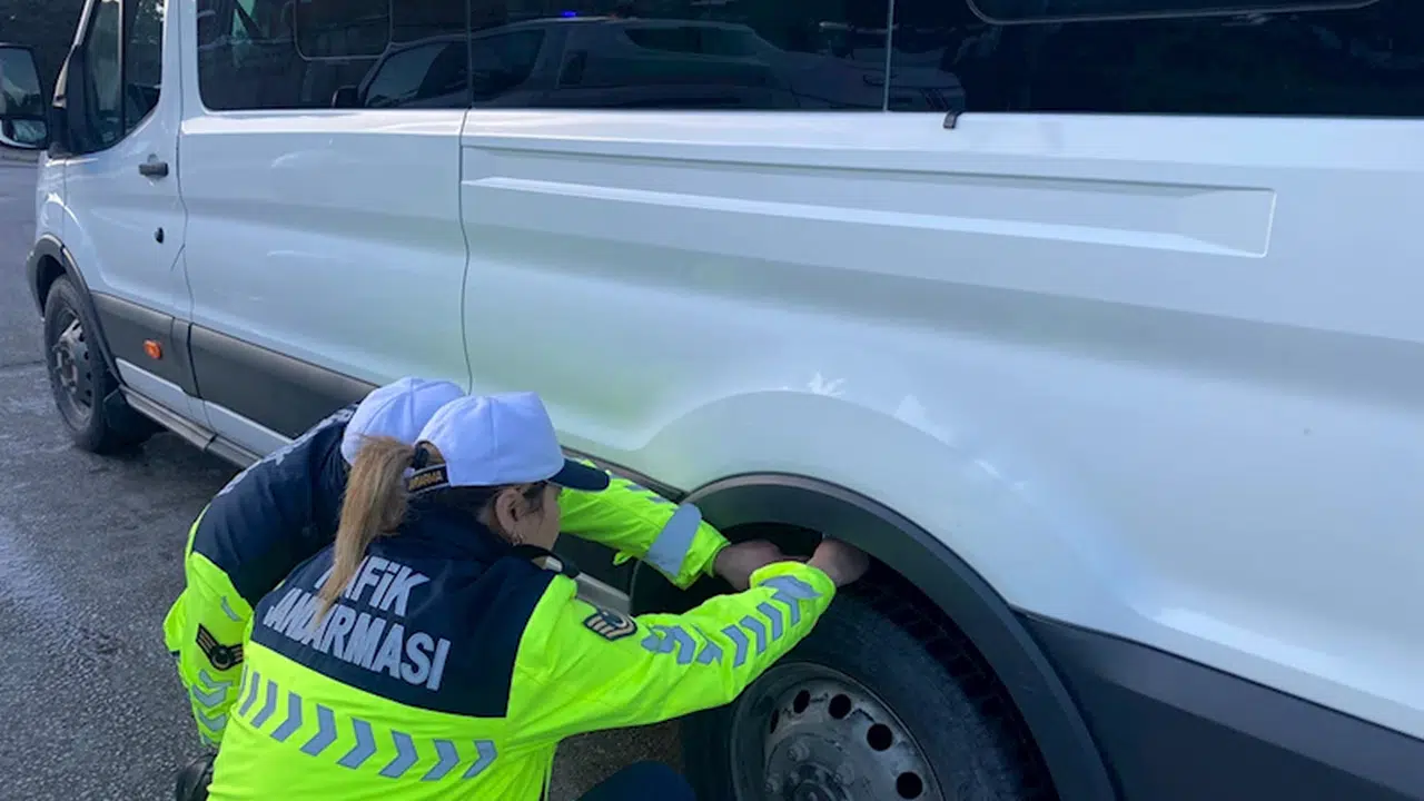 Servislerde kış lastiği bulunup bulunmadığını ve lastiklerin diş derinliğini denetleyen ekipler, şoförlerin sürücü belgelerini de kontrol etti.