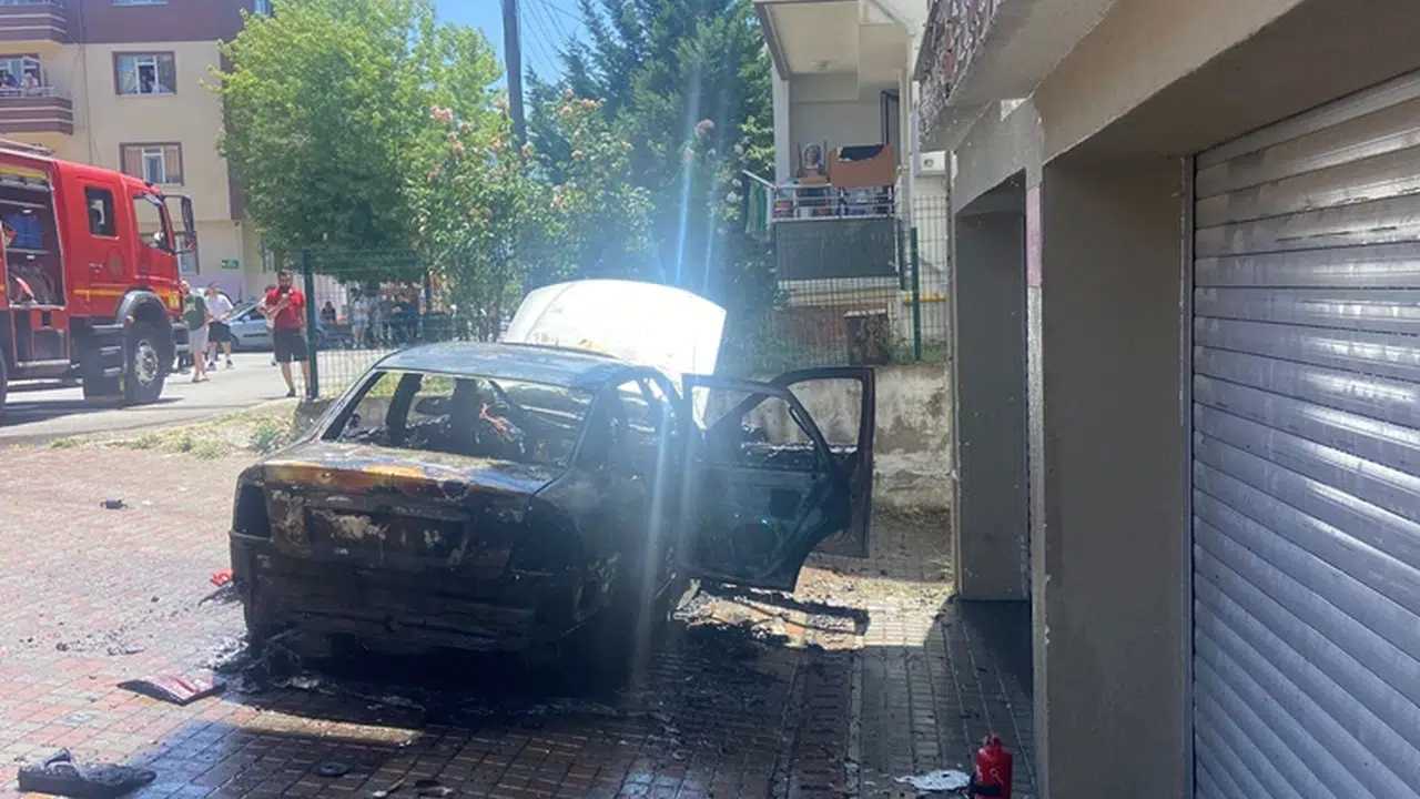Bolu'da tamir edildiği sırada yangın çıkan otomobil kullanılamaz hale geldi