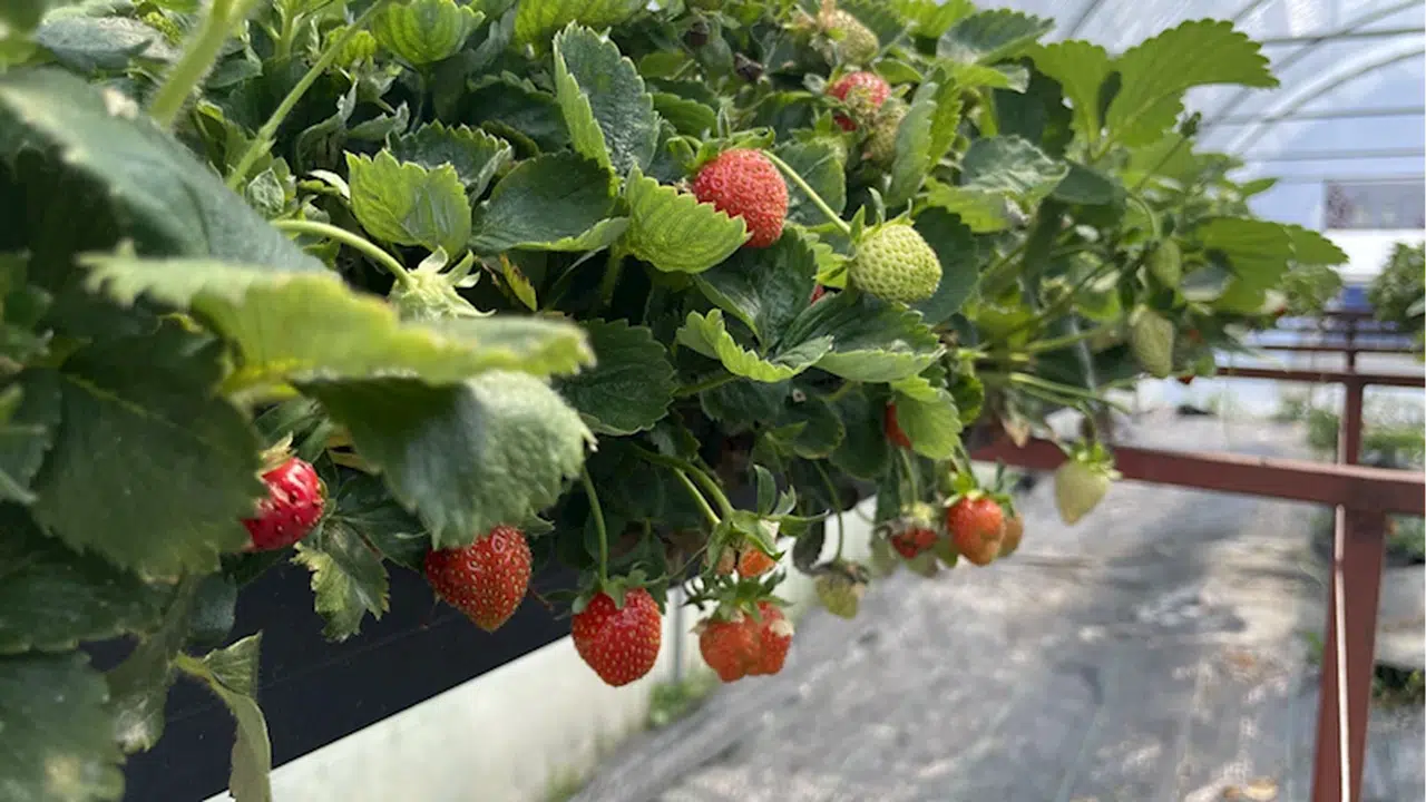 Karaçayır Mahallesi'ndeki Gençlik Merkezi binasının arkasında 2023'te kurulan toplam 120 metrekarelik iki serada, hindistan cevizi lifleriyle (kokopit) doldurulan oluklara yediveren cinsi 1400 çilek fidesi dikildi.