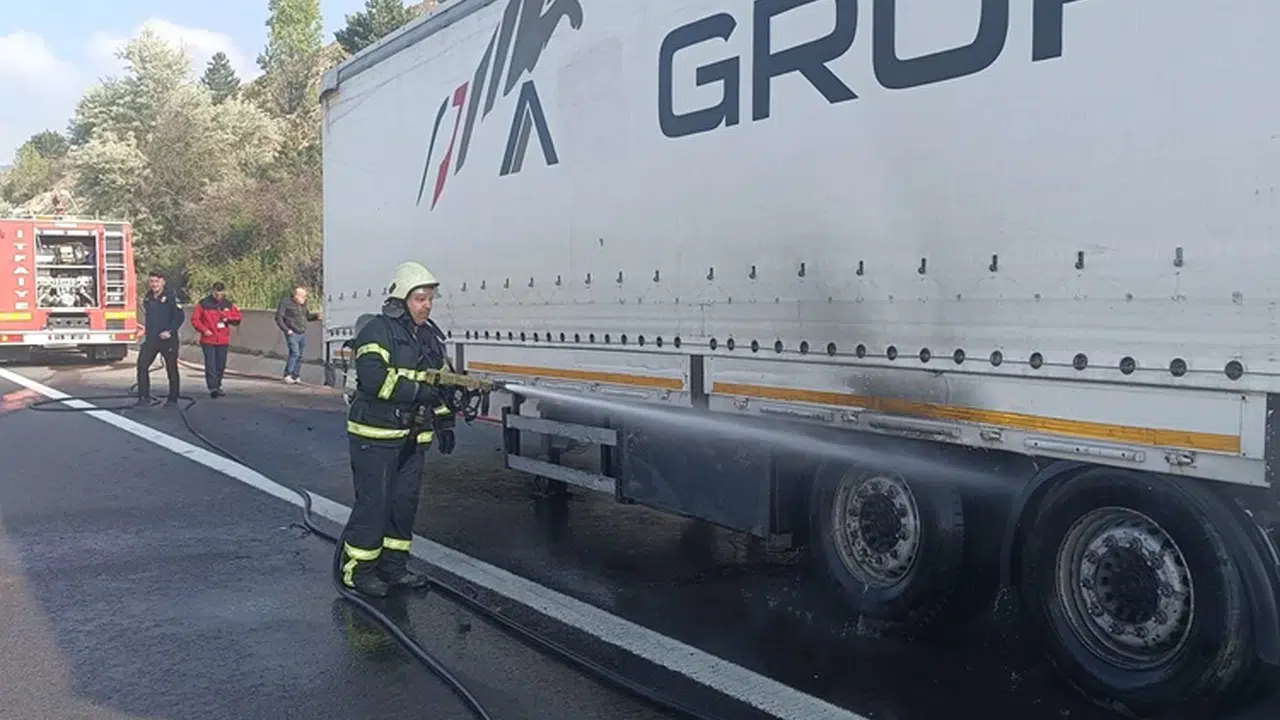 Anadolu Otoyolu'nun Bolu kesiminde tırın lastik kısmında çıkan yangın söndürüldü.