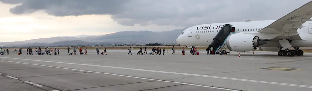 Hindistan-Almanya seferini yapan Air Vistara Havayolları'na ait yolcu uçağı, bomba ihbarı üzerine, dün saat 16.30'da Erzurum Havalimanı'na zorunlu iniş yaptı. Uçağın 234 yolcusunun Erzurum'daki bekleyişleri, Hindistan'dan gelen aynı firmaya ait başka bir uçakla, saat 16.30 sıralarında sona erdi. Yolcular, uçağa binerken görüntü alan basın mensuplarına el salladı. Yapılan son hazırlıkların ardından uçak, saat 17.30 sıralarında, Erzurum Havalimanı'ndan Almanya’nın Frankfurt kentine gitmek üzere havalandı. Bomba ihbarı yapılan diğer uçağın ise yarın sabah Erzurum'dan ayrılacağı bildirildi. (DHA)
