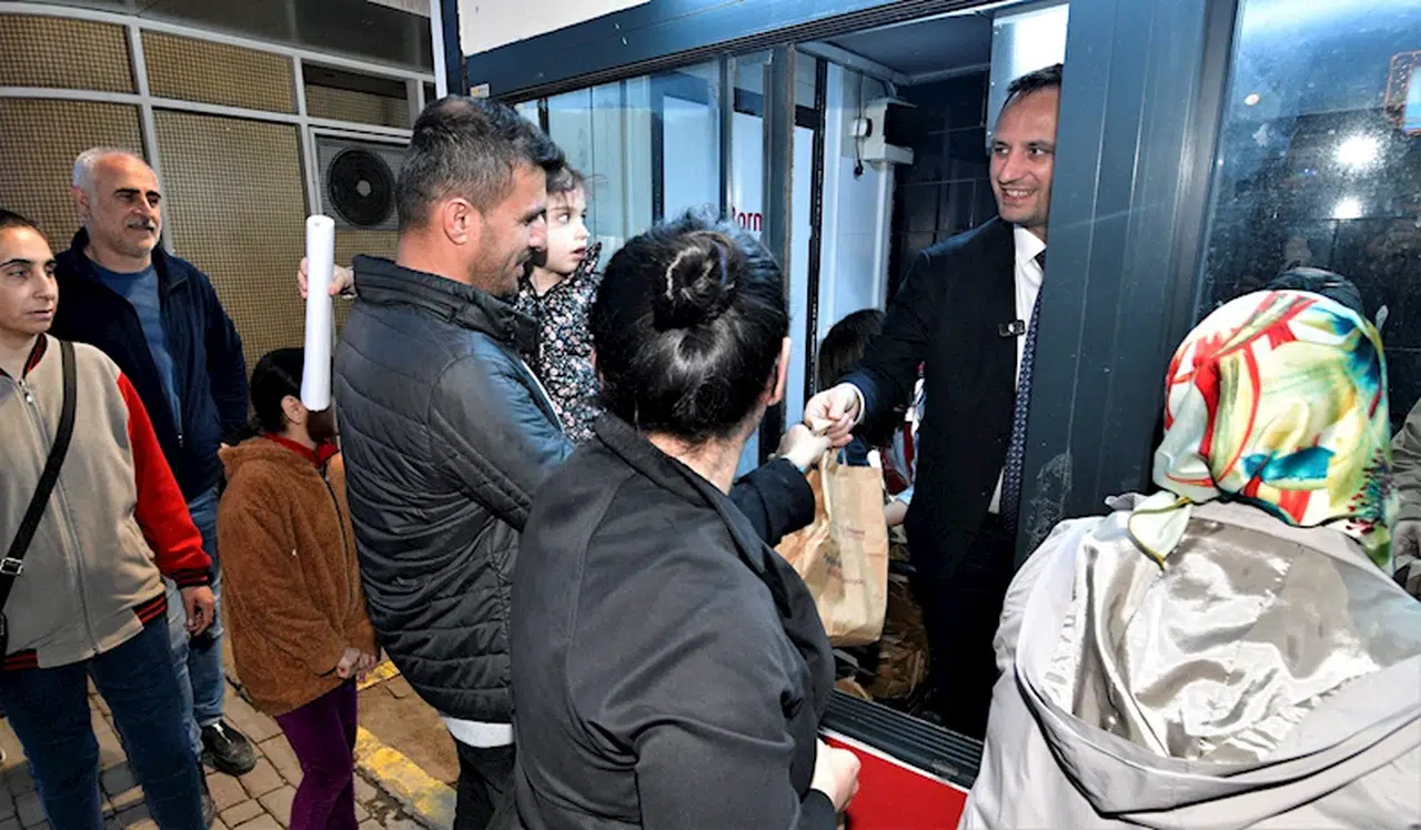İZMİR, (DHA) -İzmir Bornova Belediyesi, Bornova Metro İstasyonu ve Stadyum Metro çıkışında iftar kumanyası dağıtıyor.