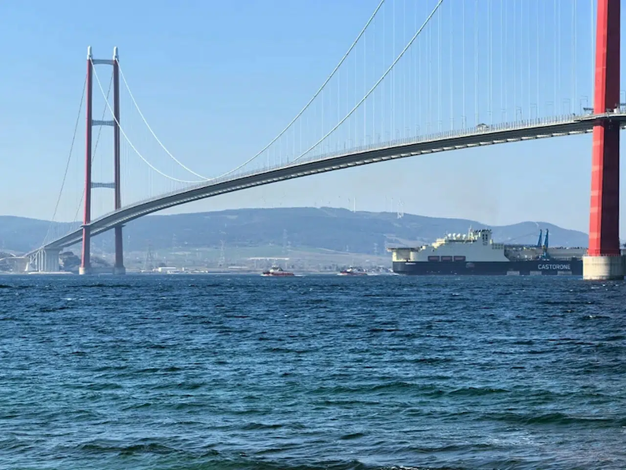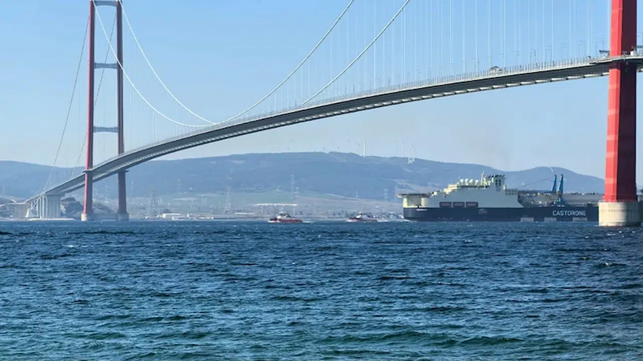 Karadeniz'de bulunan doğal gazın taşınması için derin sularda boru serim işlemi yapan 'Castorone' isimli gemi, Çanakkale Boğazı'ndan geçti. İstanbul'dan İtalya'ya giden Bahama Adaları bayraklı 325 metre uzunluğunda ve 39 metre genişliğinde, 102 bin 32 groston ağırlığındaki gemi, saat 14.30'da Marmara Denizi'nden Çanakkale Boğazı'na giriş yaptı. Saat 17.00 sıralarında Çanakkale önlerinde olan geminin geçişi sırasında Çanakkale Boğazı güney-kuzey yönlü saat 05.30 ile 17.00 arası trafiğe kapatıldı. Gemiye, boğaz geçişi sırasında 'Kurtarma-15', 'Kurtarma-18', 'Kurtarma-20' ve 'Türkeli' römorkörleri eşlik etti. Boğazdan çıkan gemi, Ege Denizi'ne doğru yol aldı. (DHA)