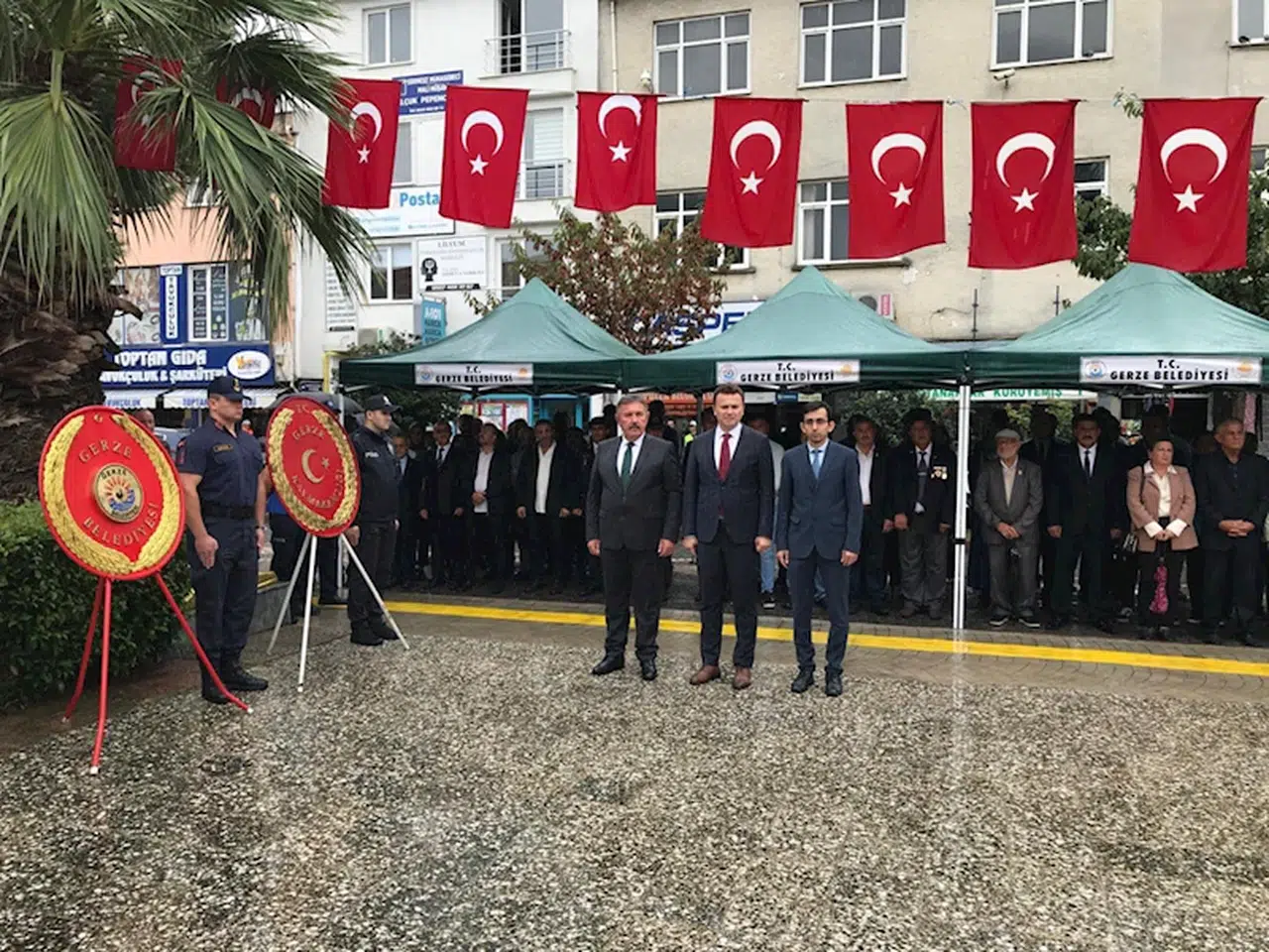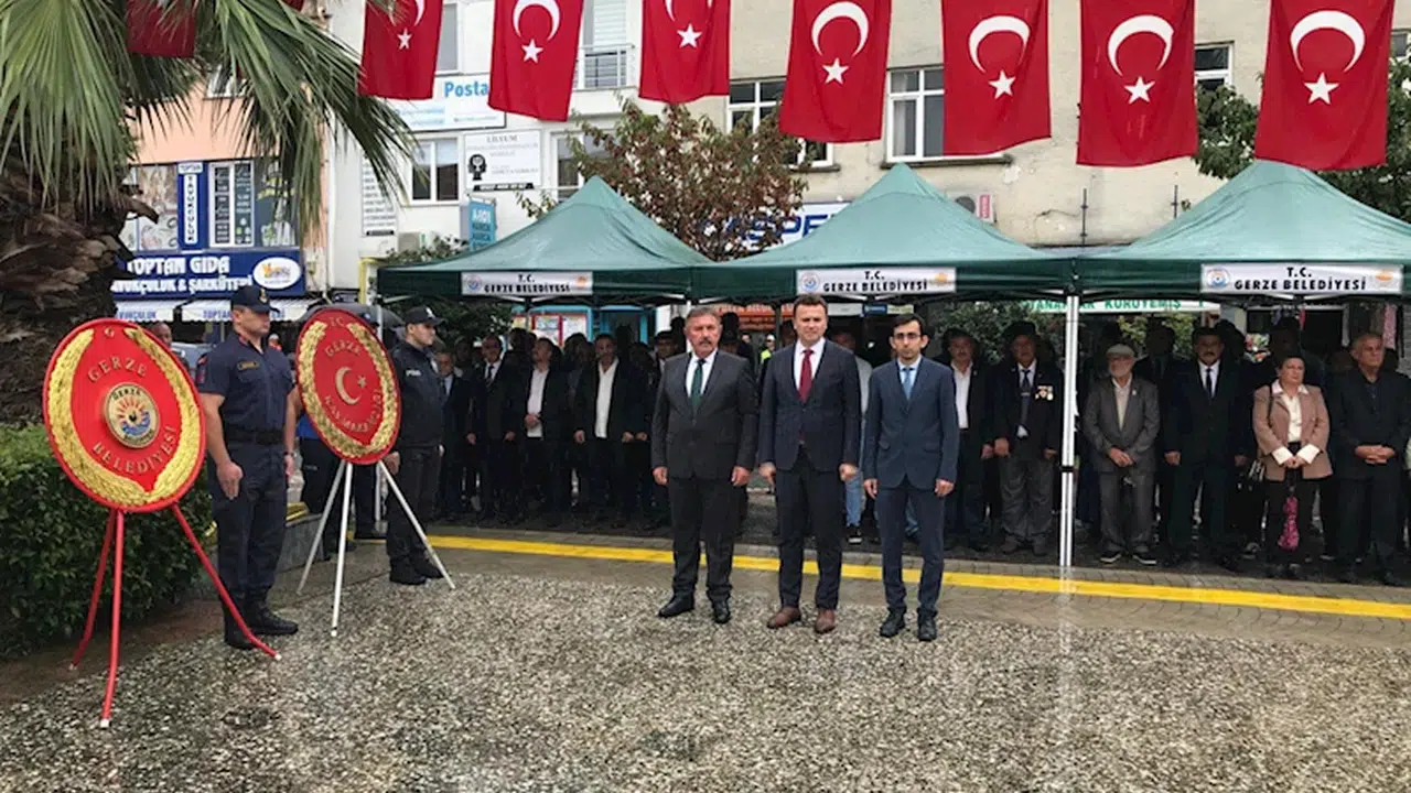 Gerze ilçesinde ise Hükümet Konağı önünde yapılan tören, Kaymakamı Mehmet Deniz Arabacı, Belediye Başkanı Osman Belovacıklı ve İlçe Jandarma Komutanı Üsteğmen Süleyman Ermiş tarafından Atatürk Anıtı’na çelenk sunmalarıyla başladı.