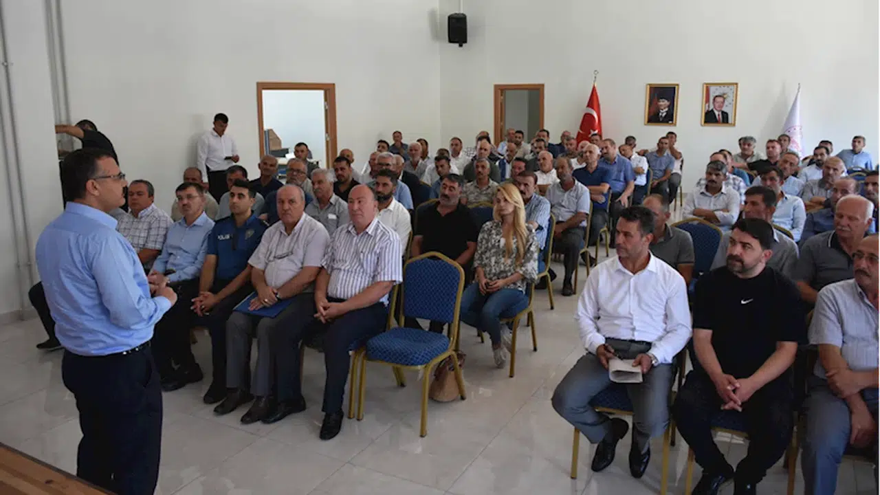 Kaymakamlık Toplantı Salonu'ndaki toplantıda, İl Sağlık Müdürlüğü Sağlık Hizmetleri Başkan Yardımcısı Uzm. Dr. Selim Güler, sivrisinekle mücadele, içme suyu ve kullanma suyu, su depolarının bakımı, temizliği ve klorlanması, suyun evlere ulaşımı, çevre sağlığında suyun önemi ve yaz aylarında Kırım Kongo Kanamalı Ateşi riskine karşı kenelerle mücadele, kenenin vücuttan çıkarılması hakkında muhtarları bilgilendirdi.
