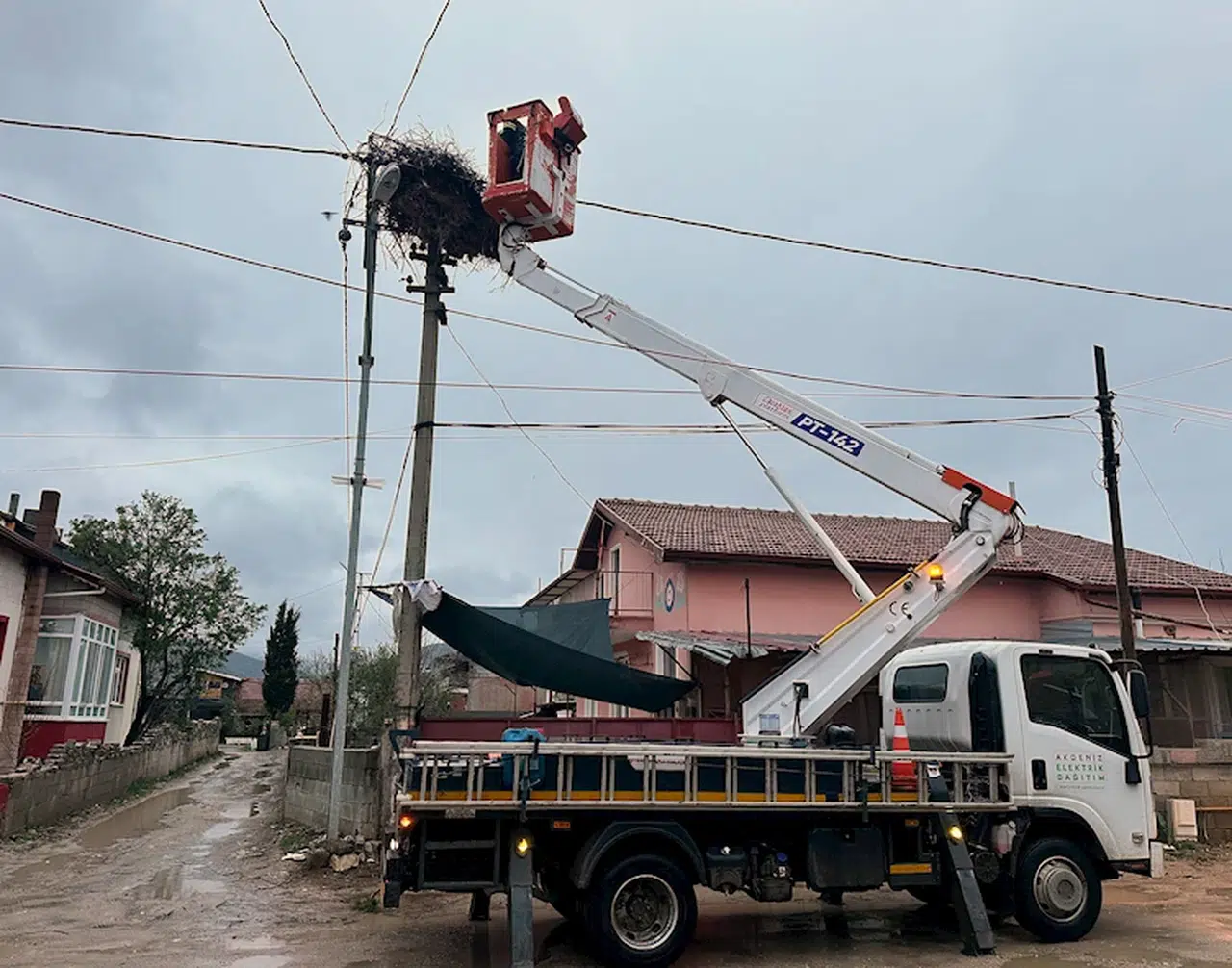 Isparta merkeze bağlı Ali Köy'de beton elektrik direği üzerinde bulunan leylek yuvası bir süre önce fırtına nedeniyle kısmen bozuldu. Durumu fark eden köy sakinlerinden Ahmet Arıkan durumu CK Enerji Akdeniz Elektrik Bölge Müdürü Fahim Altınordu'ya iletti. Dün akşam üzeri bölgeye gelen ekipler bozulan yuvayı düzeltti.