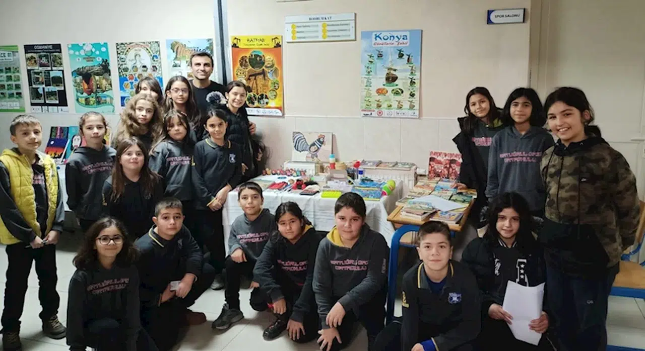 Etkinliği organize eden İngilizce öğretmeni Ömer Abalı, "Öğrencilere yerli ürün kullanımının yanı sıra tutumlu olmanın önemini de öğretmek istedik" dedi. (DHA)