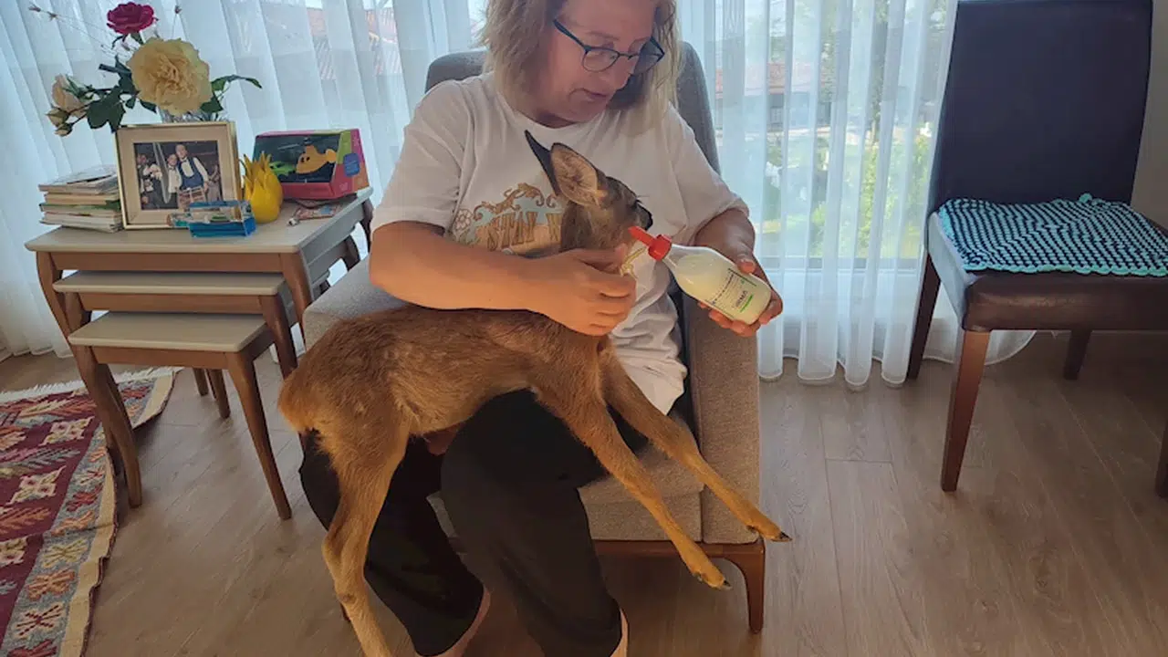 Karacanın yeni doğmuş halde bulunduğunu söyleyen Havva Deliktaş, "Karaca 3 gün önce doğmuş ve parazit bağlamış; çok kötü durumdaydı. Veterinere götürdük ve ilaca bağladık. Parazitlerden kurtardık ama gezinirken ayağını kesti. Şu an gayet sağlıklı, yaklaşık 2 aydır karacayı bakıyoruz. Gündüz bahçede, gece evimize aldık. Koltuğun arkasında kendisine bir yer seçti. Biz de orayı ona yuva yaptık. Süt veriyoruz. Meyve yemeyi ve otlamayı çok seviyor. Onu nasıl bırakacağımı bilmiyorum" dedi.