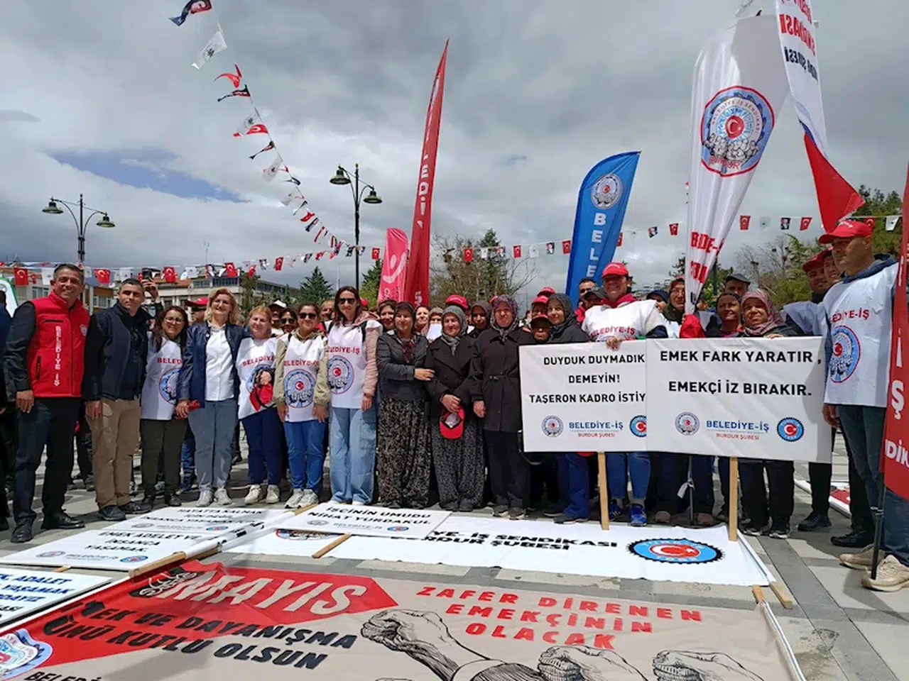 Burdur'daki 1 Mayıs Emek ve Dayanışma Günü dolayısıyla Çatalpınar Kavşağı'ndan Cumhuriyet Meydanı'nda kadar yürüyüş düzenlendi. Sendikaların oluşturduğu tertip komitesi öncülüğünde gerçekleştirilen yürüyüştü sendika ve meslek örgütleri bir araya geldi. Yürüyüşe CHP Burdur Milletvekili İzzet Akbulut, Burdur Belediye Başkanı Ali Orkun Ercengiz, Yeşilova Belediye Başkanı Okan Kurd ile işçiler ve sendika temsilcileri de katıldı. Cumhuriyet Meydanı'nda saygı duruşunda bulunulması ve İstiklâl Marşı'nın okunmasının ardından tertip komitesi adında konuşmalar yapıldı. Etkinlik katılımcıların halay çekmesiyle sona erdi. (DHA)