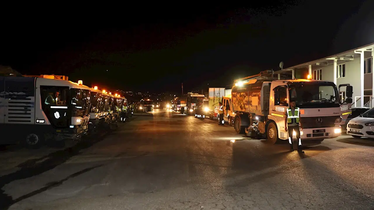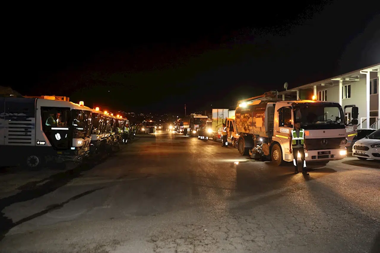 Kent Estetiği Şube Müdürü Bahriye Bahar ise 14 operatör, 5 şoför ve 44 işçi ile birlikte bir gecede yaklaşık 20 kilometre alan ile 8 adet alt ve üst geçitte temizlik yapıldığını söyledi. (DHA)