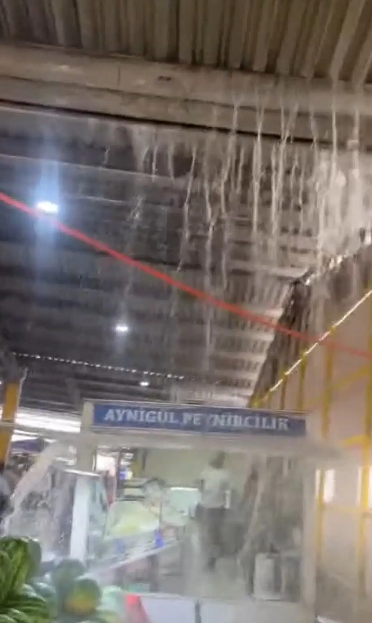 İnegöl ilçesinde aniden bastıran sağanak ve dolu vatandaşları hazırlıksız yakaladı. İlçe merkezi ile bazı kırsal mahallelerde etkisini gösteren sağanak, yaklaşık 20 dakika sürdü. Yunusemre Mahallesi’ndeki pazar alanındaki meyve ve sebze tezgahları ise çatıdan akan yağmurla sular altında kaldı. (DHA)