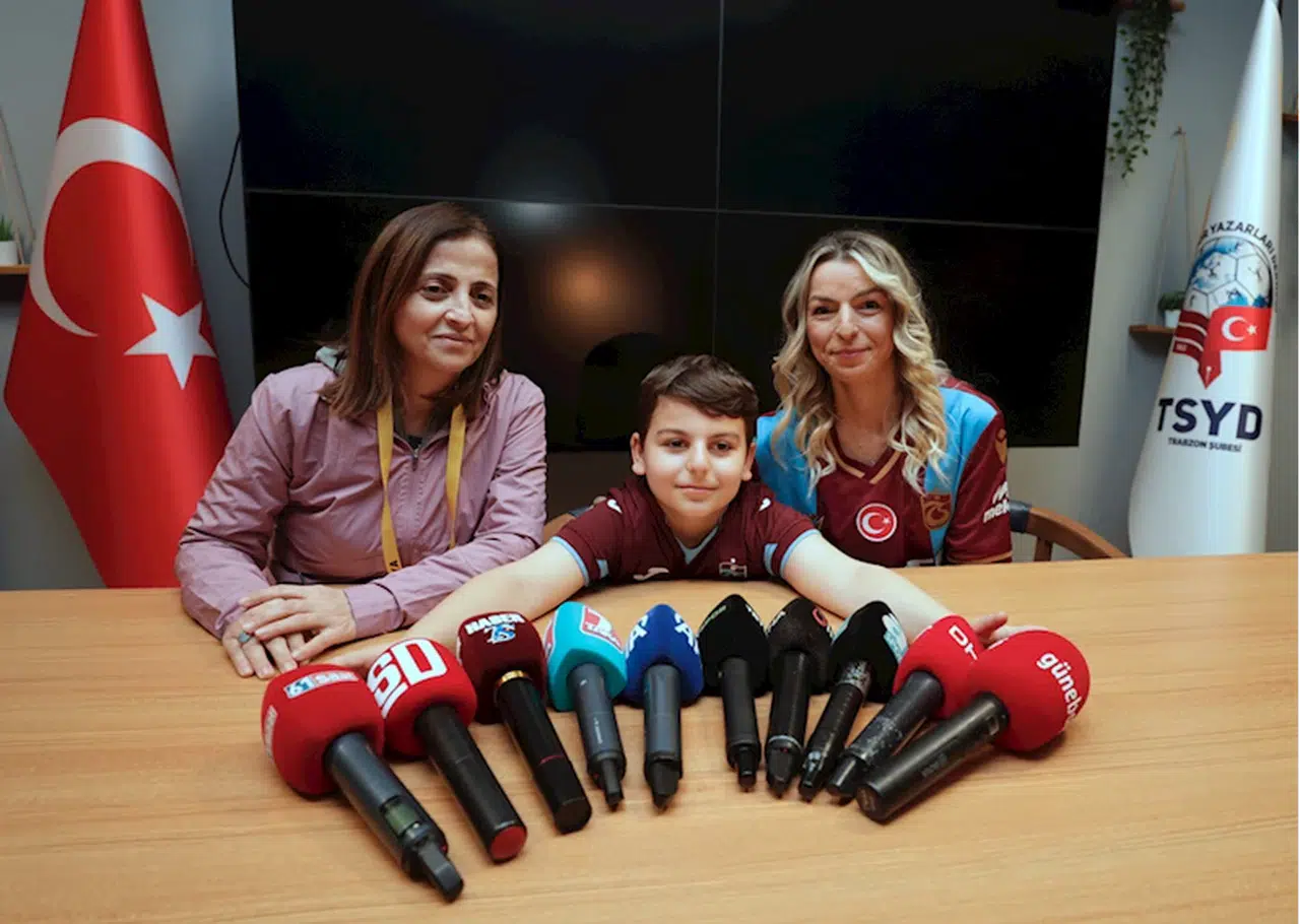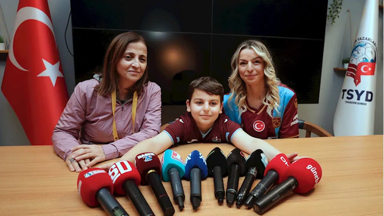 TRABZON (AA) - Bursa'da üzerindeki Trabzonspor formasıyla kaldırımda otururken yanına yaklaşan bisikletlinin biber gazlı saldırısına uğrayan ilkokul öğrencisi Yusuf Emir Bolat, Türkiye Spor Yazarları Derneği (TSYD) Trabzon Şubesi'ni ziyaret etti.
