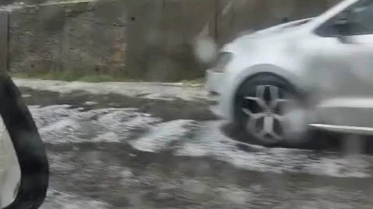 Yavuz YILMAZ/ KESTEL (Bursa), (DHA)- BURSA'nın Kestel ilçesinde etkili olan dolu nedeniyle sürücüler zor anlar yaşadı.