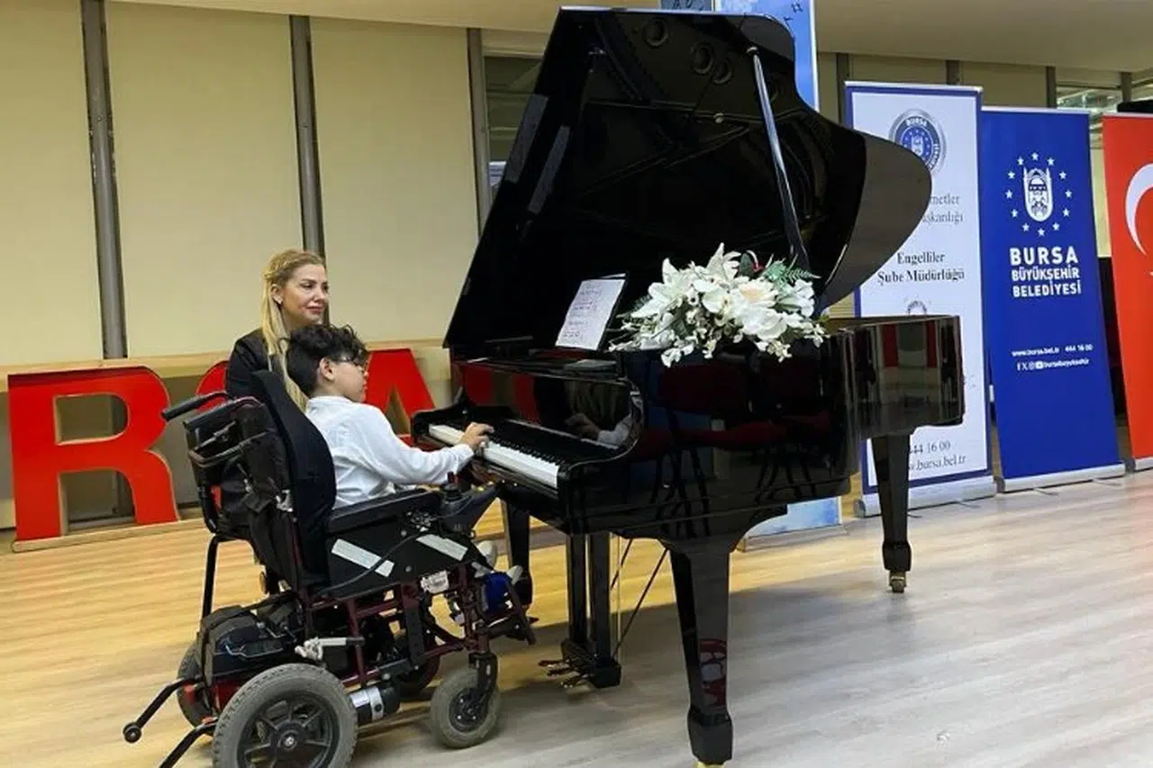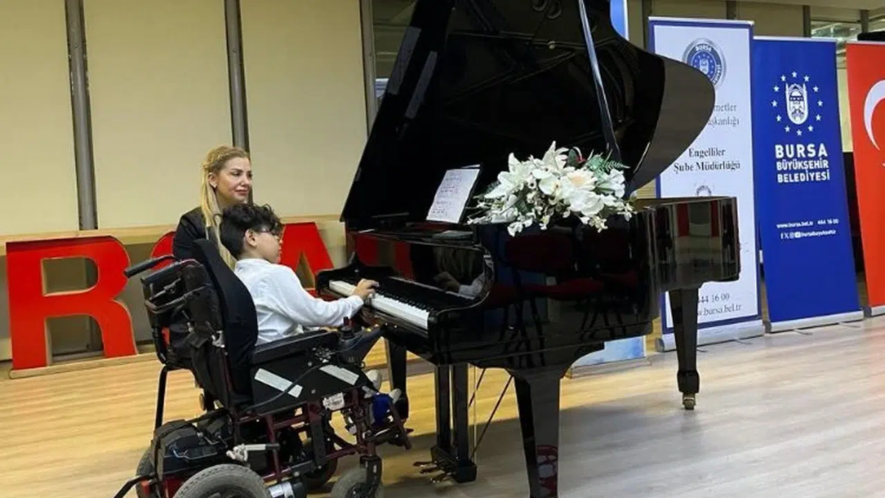 Bursa Büyükşehir Belediyesi Engelliler Şube Müdürlüğü tarafından düzenlenen ‘Engelsiz Piyano Resitali’nde hünerlerini sergileyen özel gereksinimli bireyler, dinleyenlere keyifli bir müzik ziyafeti çektirdi.